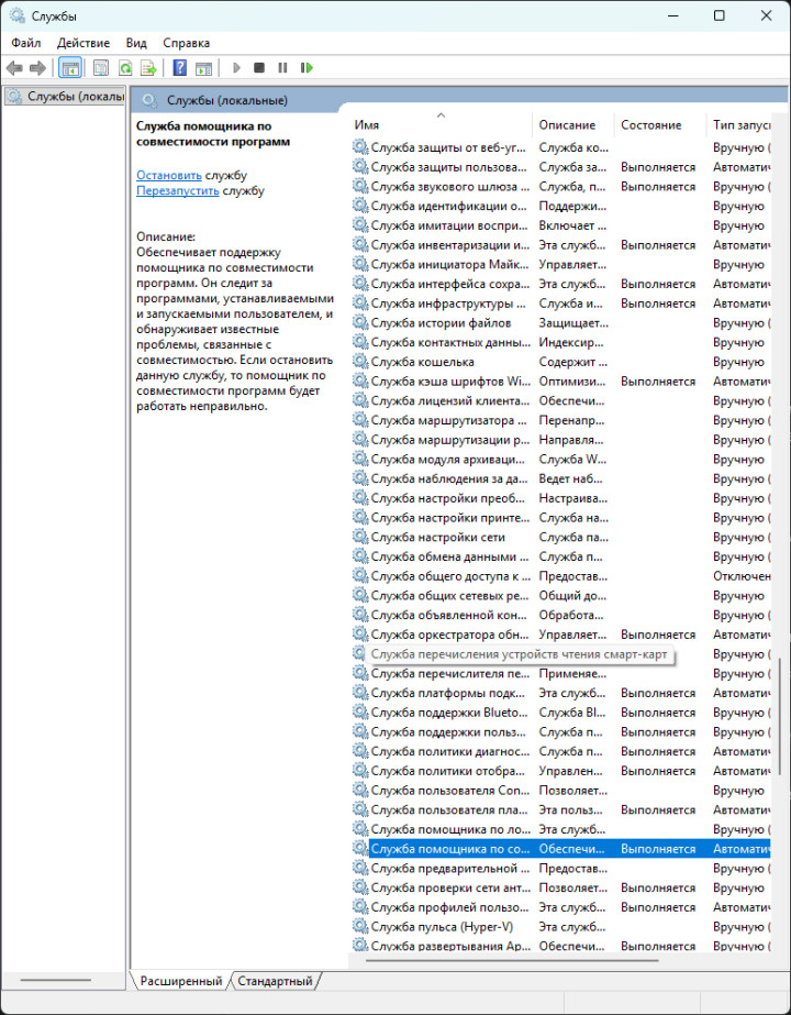 Следит за запуском старых программ и пытается устранить проблемы совместимости. На практике это редко нужно, ведь большинство приложений давно адаптированы под современные версии Windows. Если не используете софт времён Windows XP — можно смело отключить.