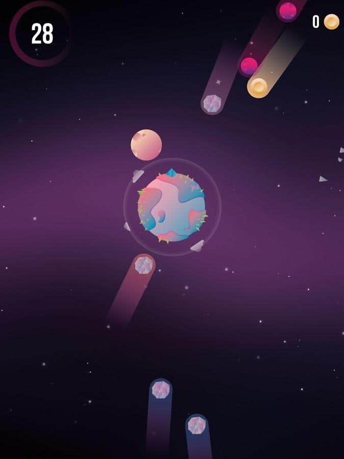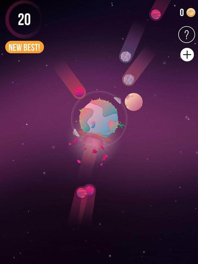 Protect The Planet – увлекательная игра на андроид, в которой вам предстоит защитить Землю от разрушения. Нашу планету со дня ее существования пытаются стереть с лица земли огромные астероиды. Вашей задачей будет, используя Луну и вращая ее вокруг орбиты Земли разрушать астероиды, не давая им столкнуться с планетой. Вращайте Луну в различных направлениях в зависимости от приближения объектов к планете. Продержитесь как можно дольше для того чтобы на планете зародилась жизнь и установите свой рекорд. Применяйте различные бонусы и бустеры, помогающие вам проходить уровни и замедлять астероиды. Создайте цепную реакцию от осколков астероидов и разрушьте их все.