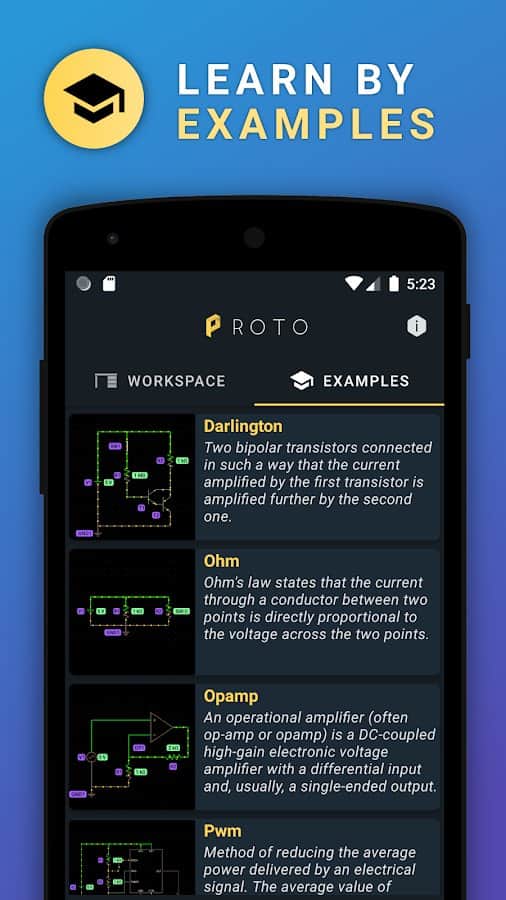 - Изучайте электронные схемы на примерах в приложении