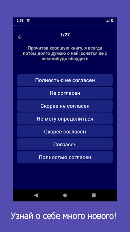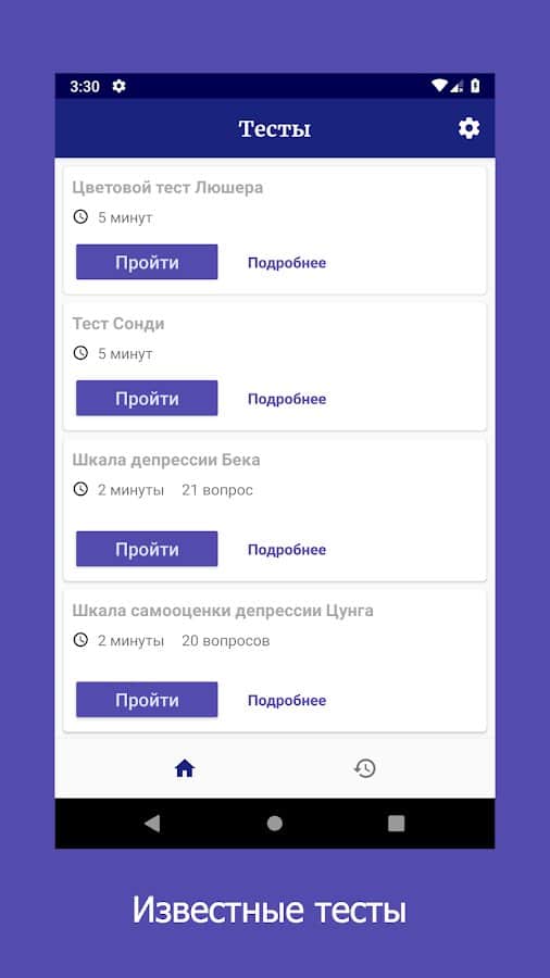 Каждый из нас хоть раз пытался разобраться в себе: исследовать свой характер, поведение, внутренний мир, отношение к людям. Приложение "Психология.Тесты" поможет сделать это в удобной и интересной форме.