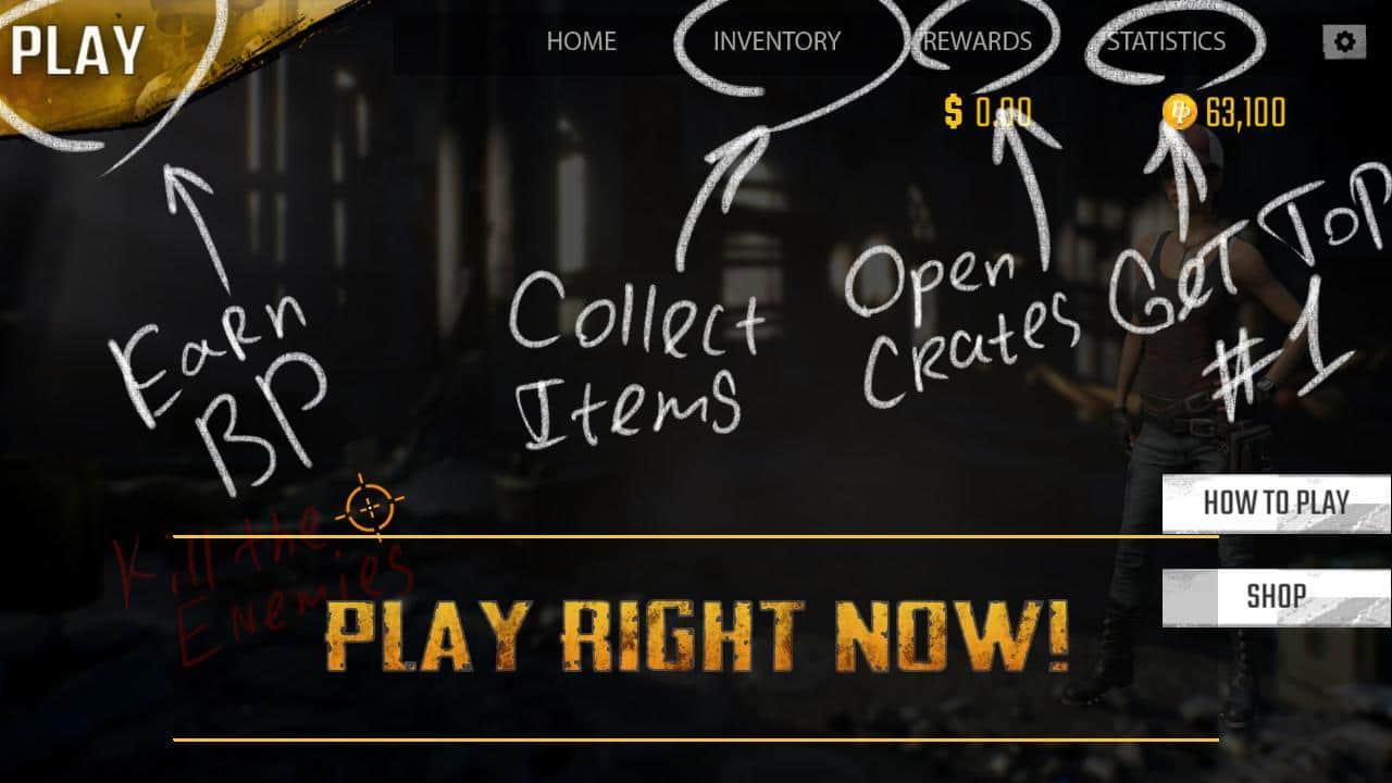 PUBG Clicker | Crates Simulator – кликер на андроид, созданный по сюжету знаменитой игры PLAYERUNKNOWN'S BATTLEGROUNDS. В этой игре вашей главной задачей будет нажимать на экран своего телефона или планшета и открывать кейсы. Тапайте по экрану своего девайса и уничтожайте врагов, которые будут конкурировать с вами. Зарабатывайте как можно больше BattlePoints и Skill points и приобретайте на них сундуки и ключи от них. Открывайте кейсы и собирайте обмундирование для героя, которое поднимет вас на первые места таблицы лидеров. Играйте в эту игру и проводите свое свободное время с пользой, собирая одежду для героя.