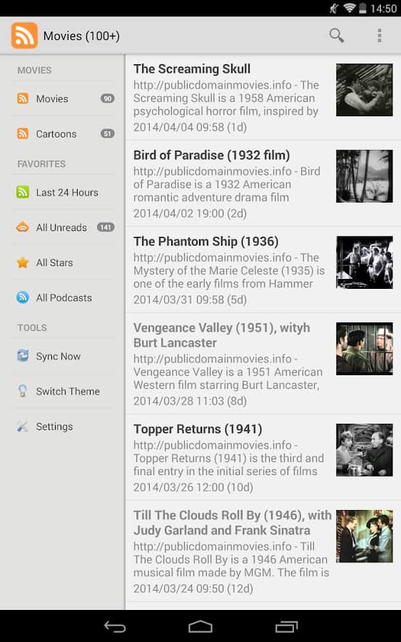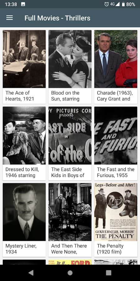 Если вы давно ищете приложение, позволяющее осуществлять просмотр фильмов на своём смартфоне без оплаты, то вы нашли его! «Public Domain Movies Free» создано для обеспечения просмотра фильмов самых разных жанров. Вам доступны фильмы ужасов, фантастика, триллеры, анимационные фильмы и мультфильмы, фэнтези и многое другое! Пожалуй, одним из важнейших нововведений стала возможность трансляции фильма с телефона на телевизор: расширьте свой кругозор во всех смыслах этого слова! А удобный интерфейс и оформление приложения поспособствуют этому!