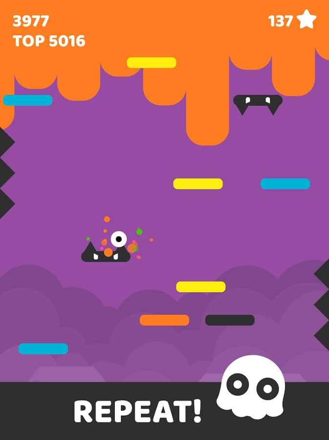 Puddi Jump: Kawaii Monsters – увлекательная игра на андроид, где вы будете помогать желейному герою подняться как можно выше. Наш герой отправился в увлекательное путешествие по многочисленным мирам и совершает прыжки по платформам, поднимаясь все выше. Вашей задачей будет помочь ему достигнуть поставленной цели и не упасть в пропасть. На уровнях игры расположено большое количество платформ разного цвета. Перемещайте героя и заставляйте его прыгать вверх, только тщательно выбирайте платформу на которую будете совершать прыжок затем что периодически появляющиеся потоки краски будут смывать платформы имеющие тот же цвет. Установите свой рекорд в этой игре и соревнуйтесь с друзьями.
