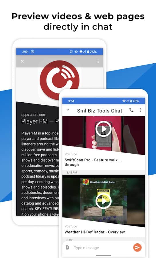Pulse SMS (Phone/Tablet/Web) - Отправка SMS и MMS-сообщений стремительно развивается и максимально упрощается для пользователей телефонов, компьютеров, планшетов, автомобилей или любого другого устройства. Делитесь с другими людьми своими мыслями с помощью текста, GIF, фото, видео, смайликов и стикеров, наслаждаясь каждый раз при отправке сообщений плавными анимациями и структурированным дизайном. Вы можете в любой момент осуществить поиск по переданной с той или иной стороны информации, защитить диалоги паролем или воспользоваться умными ответами.
