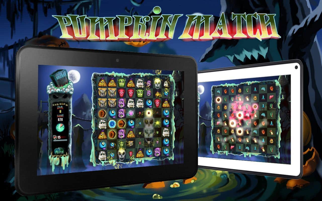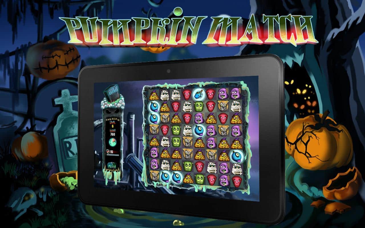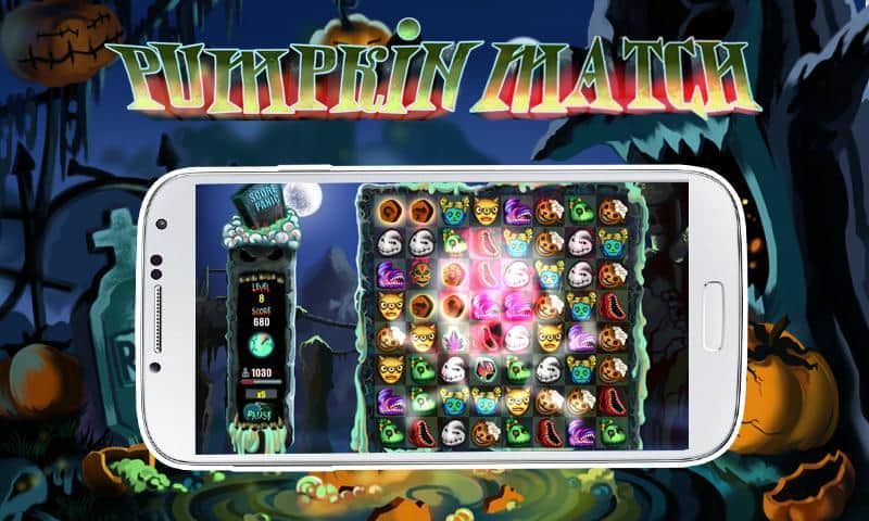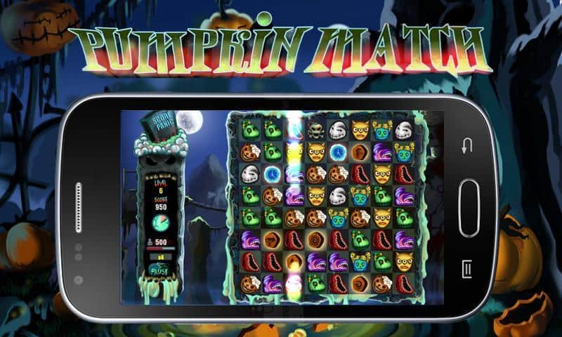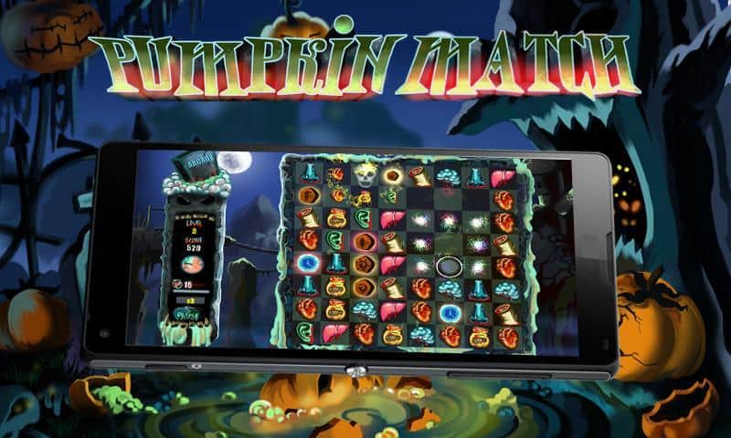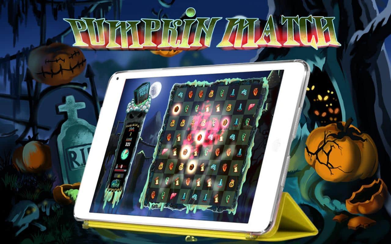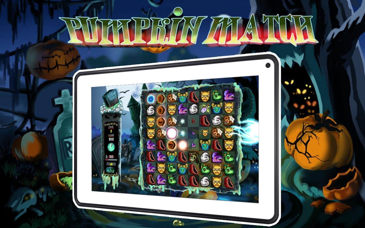 Pumpkin Match Deluxe - тематическая игра из жанра "три в ряд" на андроид, сделанная в стиле Хэллоуин. Вам за определенное время необходимо убрать как можно больше фишек с поля для этого используйте страшные бонусы и зарабатывайте баллы. Игра порадует вас разнообразными бонусами и многочисленными жуткими уровнями. Соберите как можно больше баллов, и поделиться своими успехами с друзьями в таблице лидеров.