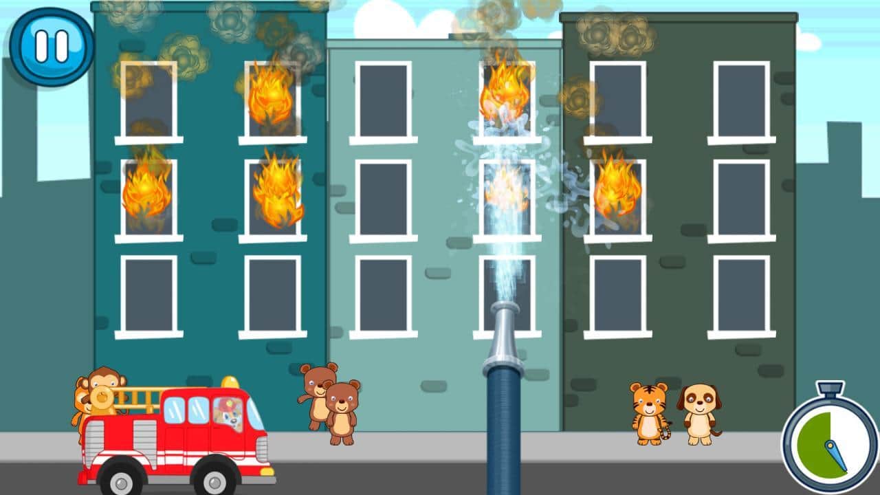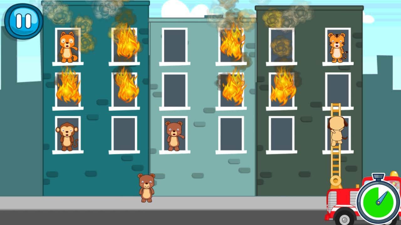 Puppies Fire Patrol - пять кто-то баловался со спичками, или возможно просто произошло короткое замыкание. Этот вопрос мы оставим на потом, а сейчас самое главное затушить пожар пока пламя не распространилось по всему дому. Щенячий пожарный патруль готов нести службу сутки на пролёт. Помимо тушения пожаров вам необходимо спасать различных зверей. Игра отлично подойдёт как для мальчиков так и для девочек. Спокойно и без паники мы методично тушим пожары и спасаем зверей стоявших у окон. До пожара ещё необходимо доехать управляем машиной и объезжаем все препятствия.