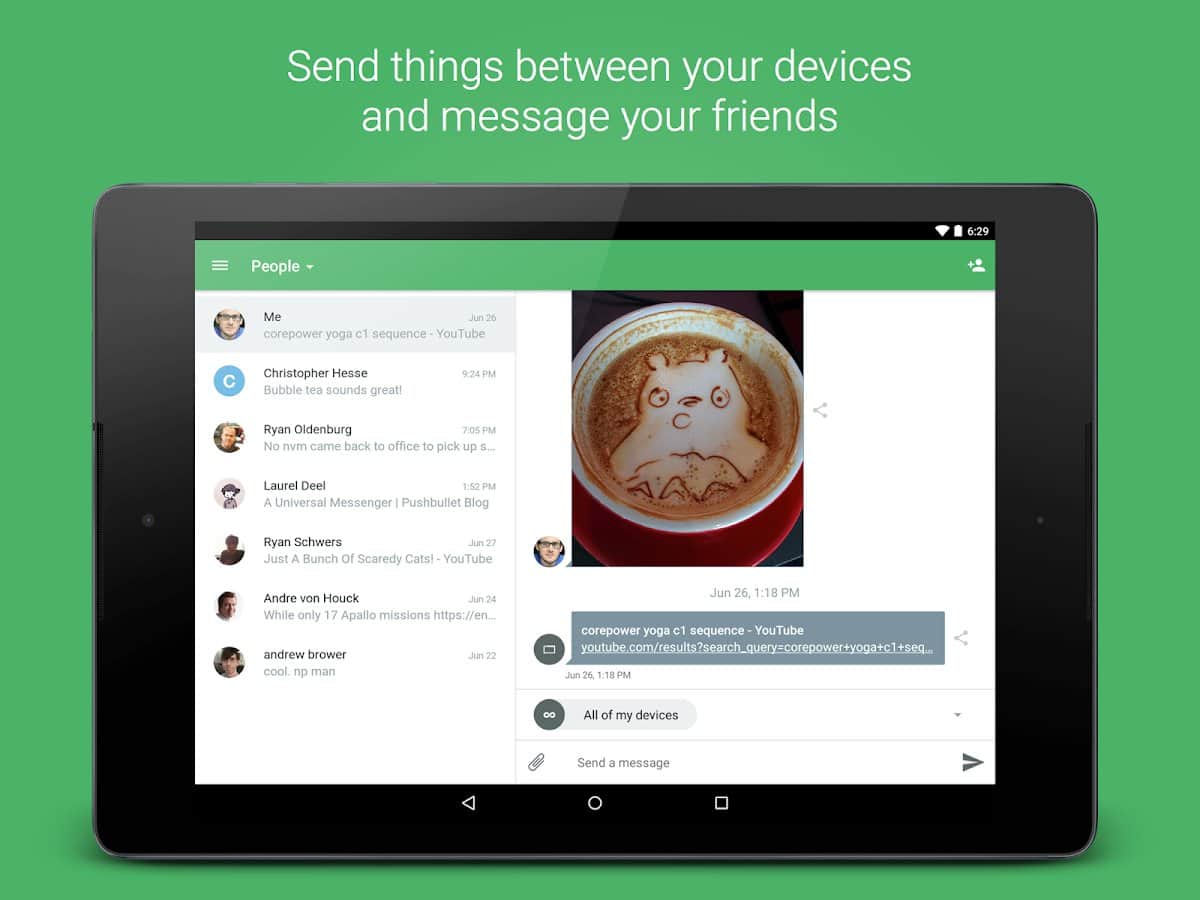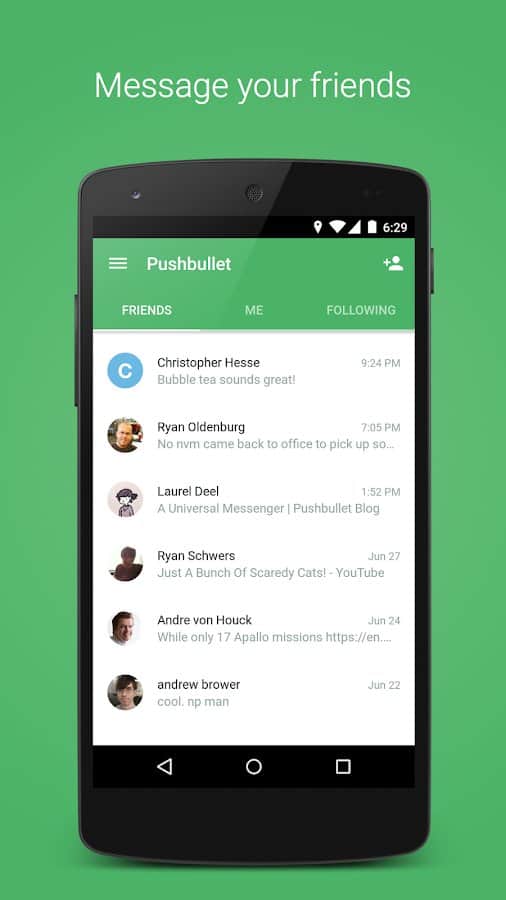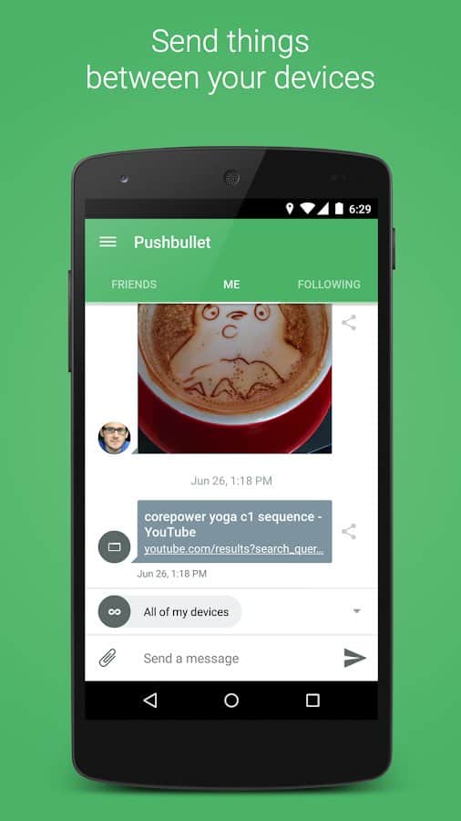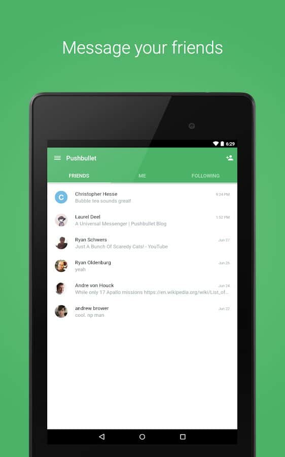 Невероятно удобное приложение, в тех ситуациях, когда нужно быстро поделиться с кем-то ссылкой или файлом небольшого размера. В Pushbullet можно добавлять друзей, с которыми вы часто делитесь информацией, либо, используя расширение для браузера, передавать данные между собственными устройствами. Кроме того, предусмотрены так называемые каналы: подписки, об обновлениях которых вы будете моментально проинформированы. Также в настройках можно выбрать режим, в котором все уведомления, которые приходят на ваш смартфон будут отображаться на экране связанного компьютера. Ну а Material Design в оформлении просто радует глаз.