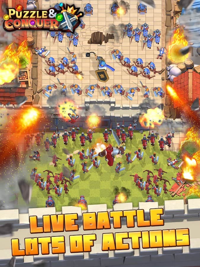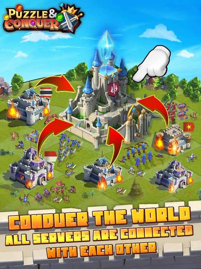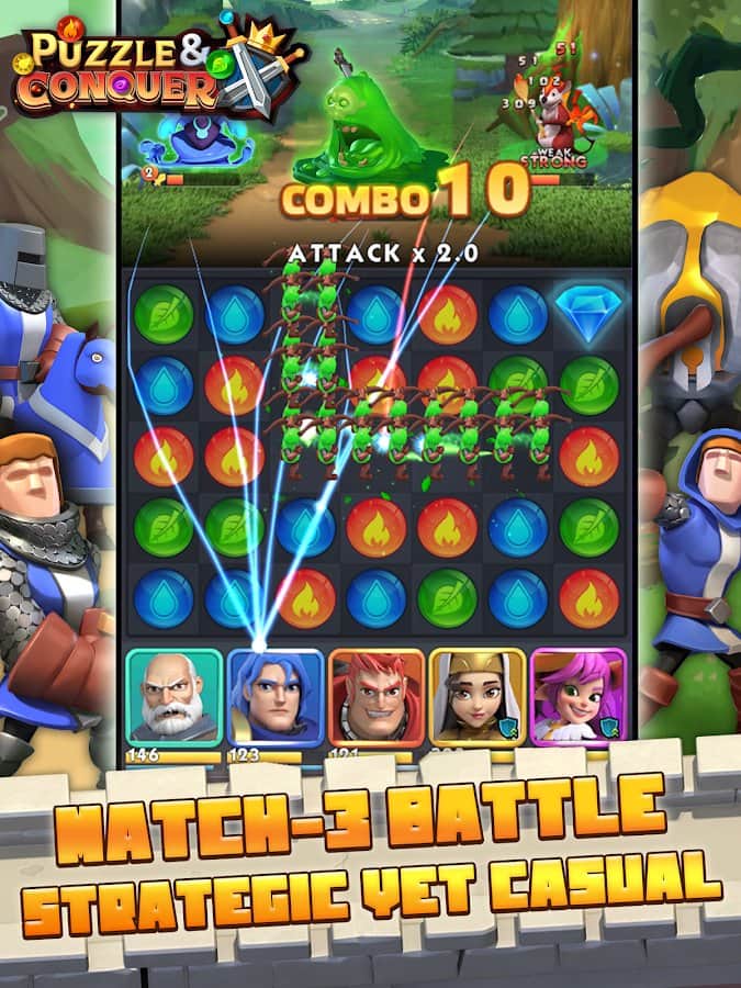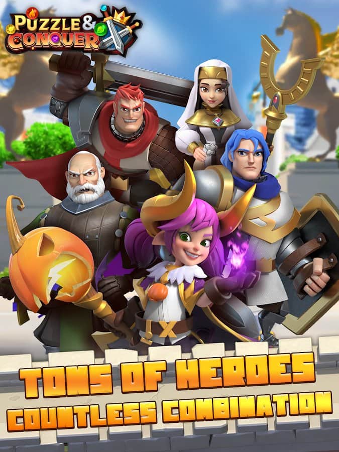 Puzzle and Conquer – увлекательная стратегия на андроид, где вы будете защищать королевство от врагов. Ваше королевство находиться в страшной опасности и вам как правителю предстоит собрать огромную армию и спасти королевство от врагов. Решайте многочисленные головоломки и задачи игры и развивайте и увеличивайте земли своего королевства. Принимайте на службу сильных и могущественных героев которые способны одолеть противников. Составляйте ряды из драгоценных камней и открывайте новых героев получая при этом ценные награды. Играйте с другими игроками и создавайте с ними союзы для победы над противником.