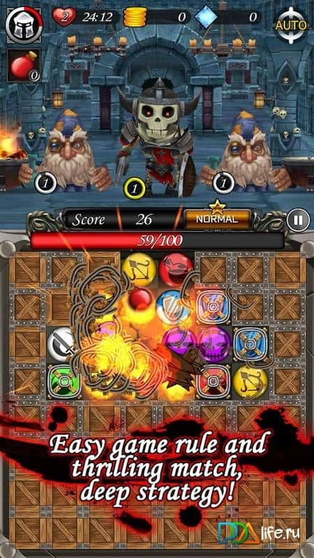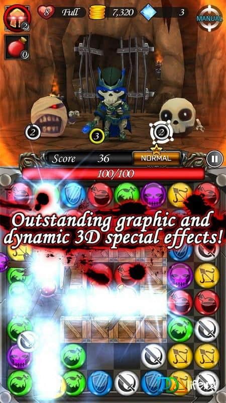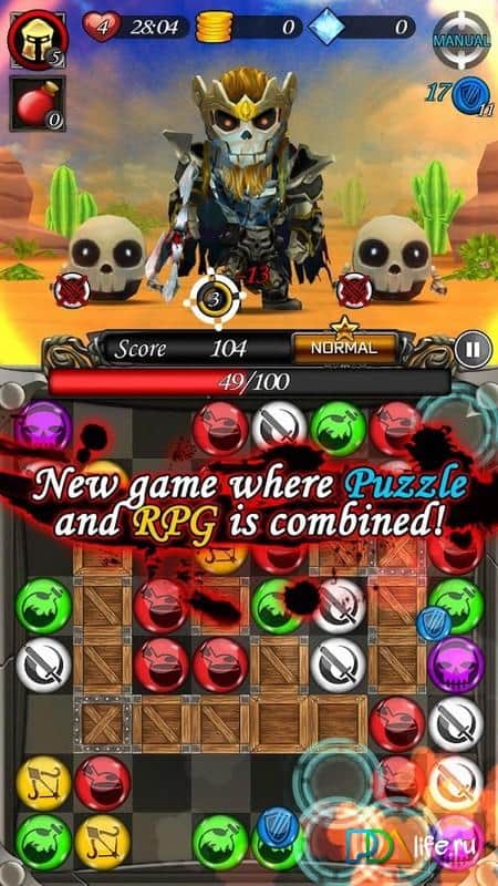 Puzzle Breaker - Fantasy Saga - игра головоломка из жанра "три в ряд" в которой вам с помощью сопоставления разноцветных шаров предстоит убивать монстров. Станьте отважным героем и спасите похищенную принцессу из лап ужасных монстров. Составляйте разноцветные шары в ряд и проделывайте различные атаки, которые помогут вам победить и получить компенсацию в виде сердца, золота или бриллиантов. Станьте мастером в этой игре и завоюйте все награды, победив всех монстров.
