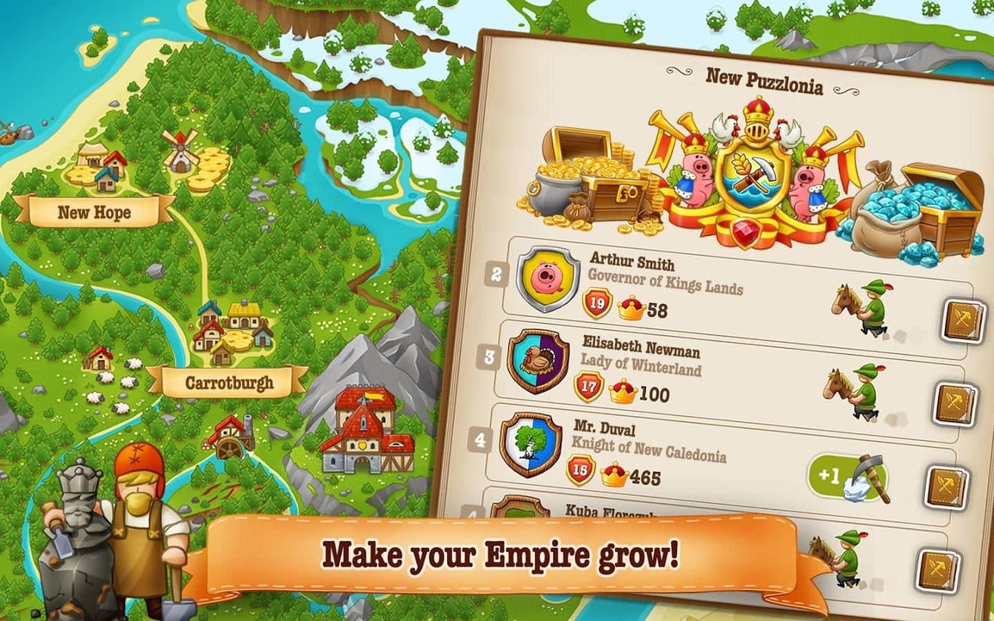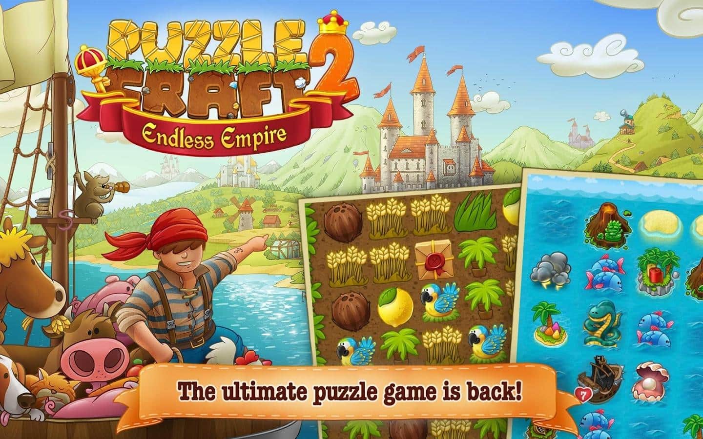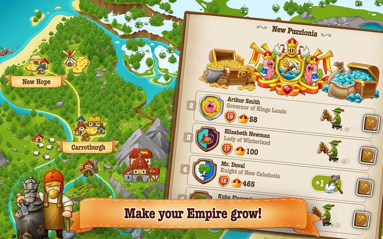 Наверно может показаться что Puzzle Craft это очередная аркадная головоломка из серии три в ряд, но это только на первый взгляд. На самом деле геймплей гораздо глубже и разнообразней. И если уж быть до конца честными, то стоит отметить что это единственная игра в своем роде. Для тех кто не знаком с игрой поясним основные аспекты игровой механики. Да в основе всего лежит геймплей позаимствованный у аркад три в ряд, но при помощи складывания различных последовательностей плиток вы будете получать различные предметы, навыки, вещи, стройматериалы и прочее. Все это вы будете использовать для создания собственного государства. Puzzle Craft 2 - продолжение игры в которой разработчики сохранили основные элементы, при этом сиквел получил массу новых и приятных дополнений. В том числе более широкие возможности для управления своей империей, к примеру магию, более масштабные задачи и многое другое.