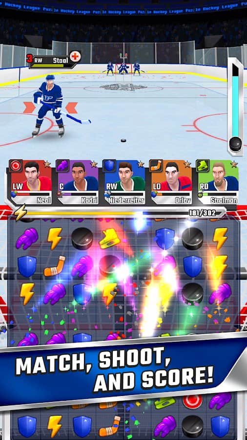 Puzzle Hockey – спортивная игра на андроид, где вы будете играть в хоккей. В этой игре вашей главной задачей будет собрать свою непобедимую команду из именитых игроков и побеждать в чемпионатах. Применяйте на деле свою логику и разрабатывайте непобедимую тактику, которая пригодиться вам на льду. Составляйте комбинации из клюшек, шлемов, шайб и других предметов и получайте преимущество перед соперниками. Удачные комбинации из предложенных предметов позволят вам успешно забивать голы в ворота противника или мастерски защищать свои от атак. Выиграйте в чемпионатах и получайте ценные призы.