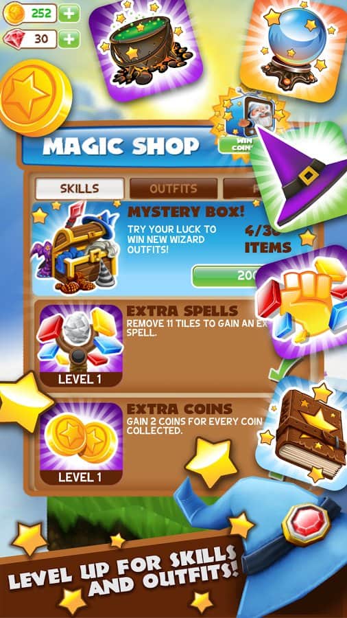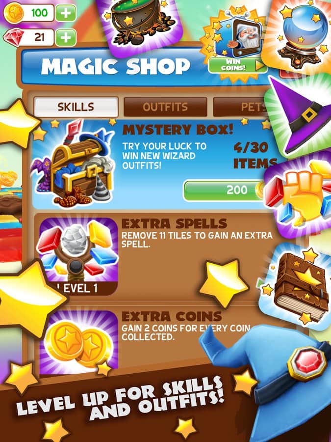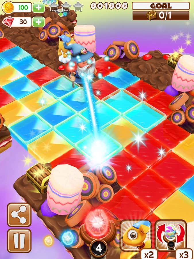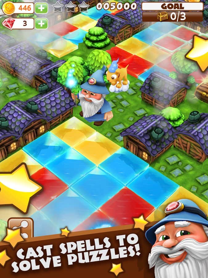 Puzzle Wiz – интересная игра из жанра три в ряд на андроид с 3D миром. В этой игре вы будете помогать волшебнику по имени Мерлин, собрать воедино радугу, которая случайным образом рассыпалась на мелкие разноцветные детали. Путешествуйте по различным мирам и собирайте нужные вам детали, а также специальные звезды и бонусы. Пройдите захватывающий путь, который проведет вас по волшебному лесу, острову из конфет и мороженного и долине восхода солнца. Выполняйте различные миссии и помогайте главному персонажу игры доброму волшебнику получить новые навыки и забавные костюмы. Пройдите более 100 уровней и наслаждайтесь красочной графикой и призами.