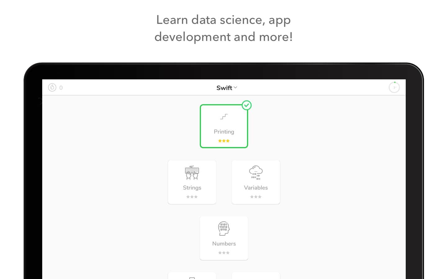 Py - Давно мечтали научиться кодить? Теперь это станет немного проще! Конечно же освоить всё на уровне профессионала у вас сразу не получится, но при помощи данного приложения вы сможете узнать основы по таким языкам как: Swift, Python, Javascript, HTML/CSS, Data Science. Изучая основы вы сможете заложить себе базу для того что бы в будущем научиться большему. Стоит заметить что здесь все создано для тех кто мало знаком с данной темой, так что даже если вы зеленый новичок то с легкостью сможете освоить все.