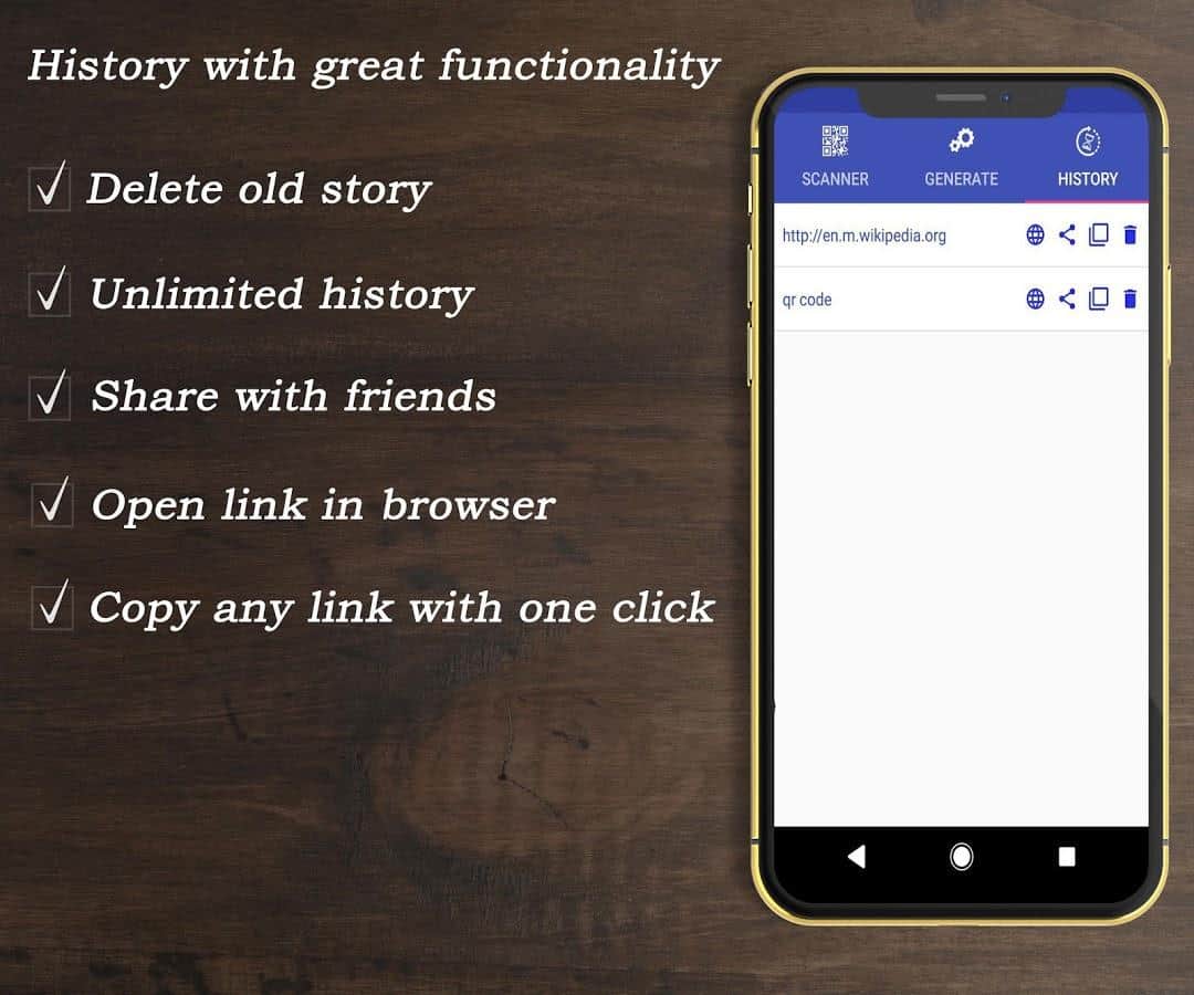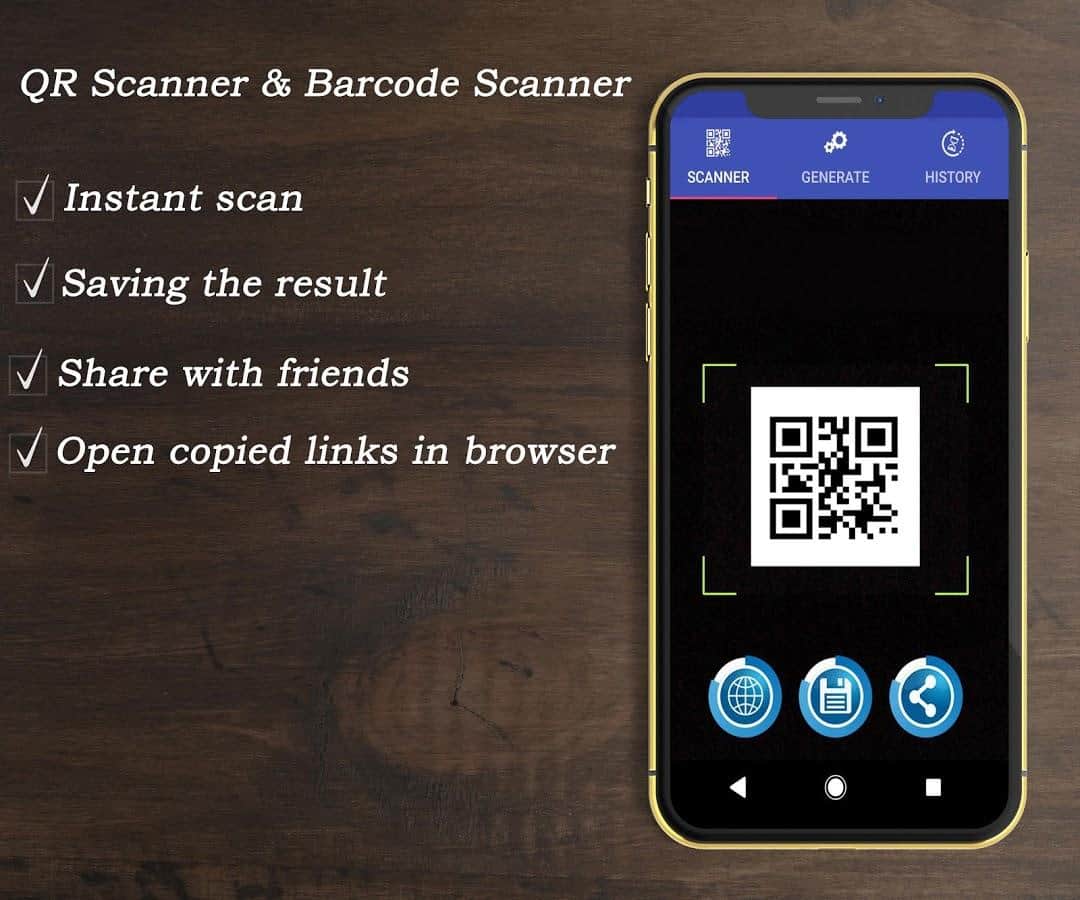 С приложением QR Code Scanner вы сможете отсканировать QR- и любой штрих-код, а также открыть и посмотреть результаты в браузере, произвести генерацию и историю сканирования.