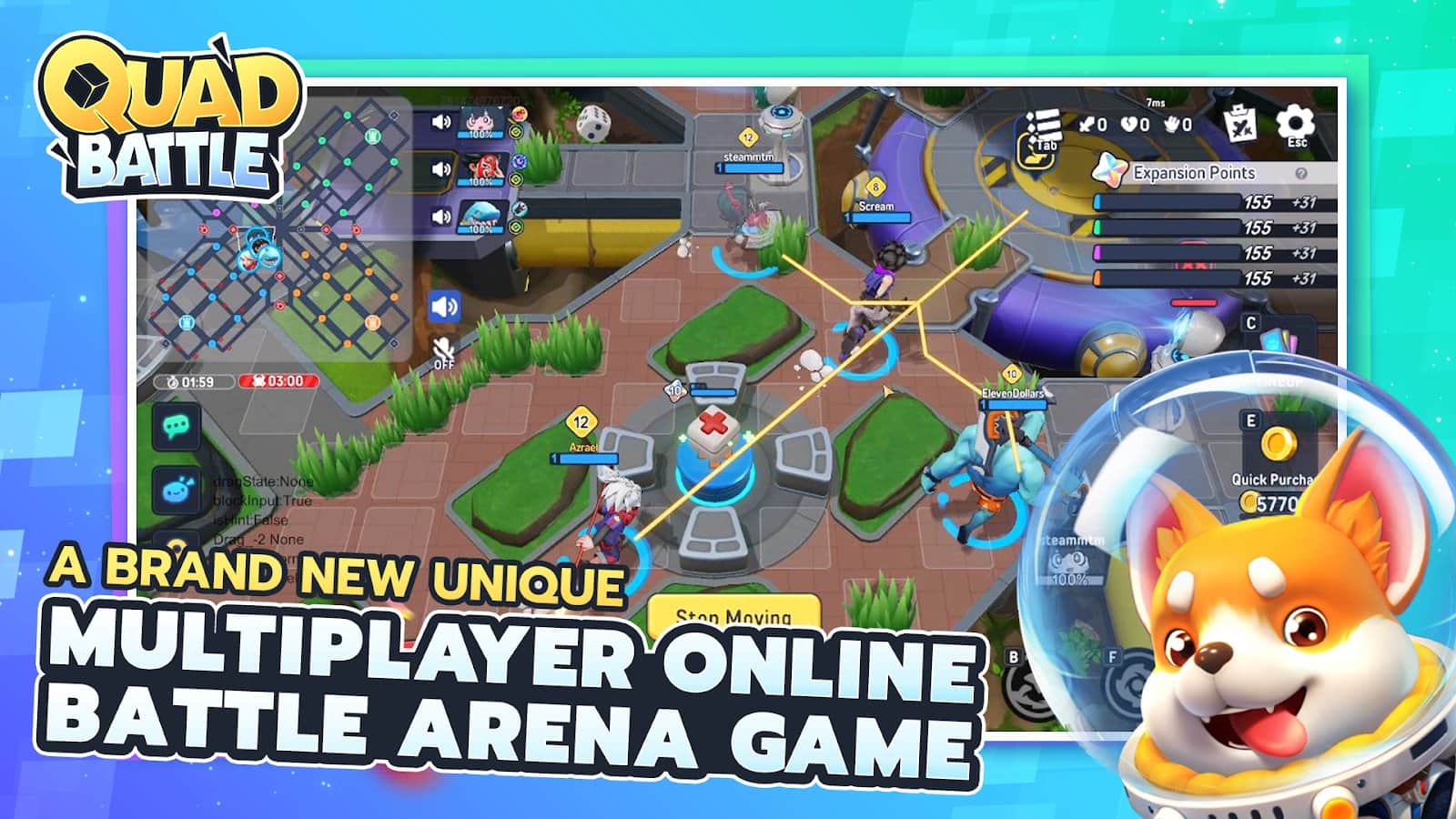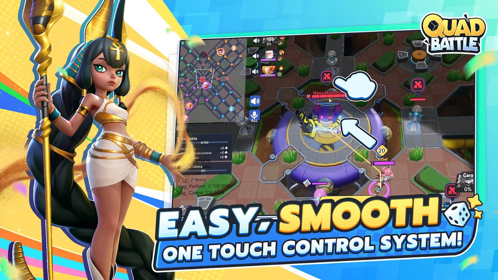 Quad Battle - это увлекательная и доступная игра в жанре MOBA, где 16 участников сходятся в захватывающем бою на уникальной арене! Инновационная многопользовательская арена сражений предлагает свежий формат — сразу 4 команды противостоят друг другу на динамичной, сеточной карте. Ведите сражения, захватывайте позиции и стратегически обыгрывайте противников на пути к победе! Успех зависит только от стратегии, командного взаимодействия и навыков. Ваши шансы на победу определяются мастерством владения героями, координацией с командой и принятием умных тактических решений.
