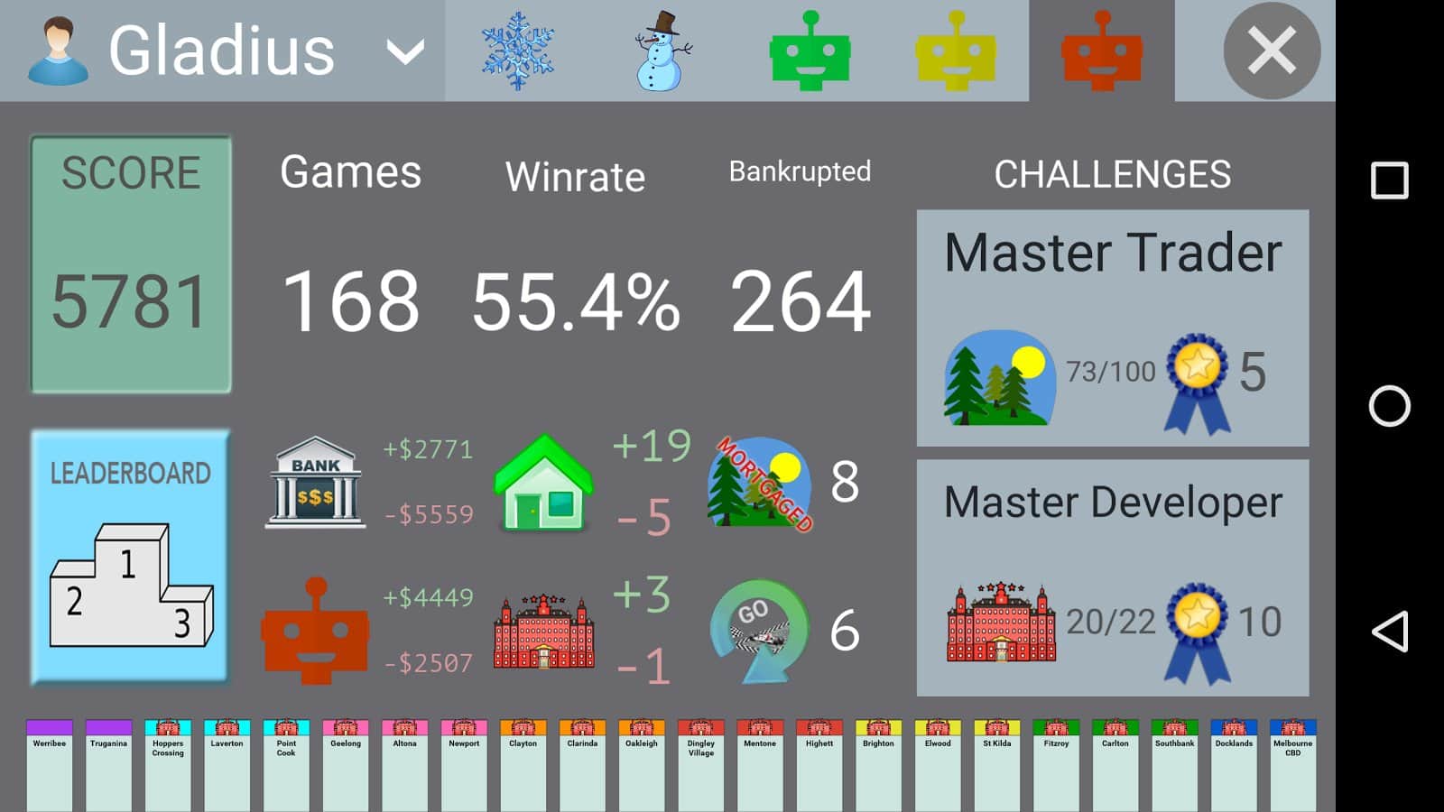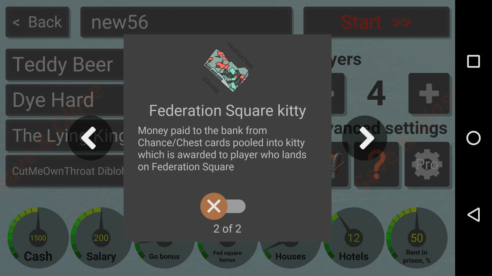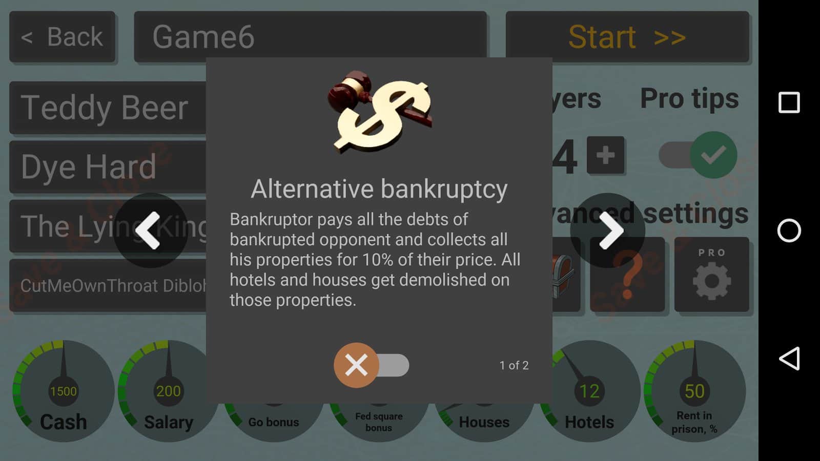 Quadropoly Pro – популярная настольная игра на андроид, где вы будете играть в монополию. В этой игре вашей задачей будет скупать недвижимость за небольшие деньги и вести переговоры с другими бизнесменами. Улучшайте свои навыки игры и станьте лучшим игроком соревнуясь с опытным AI. В игре представлено несколько режимов сложности подбирайте подходящий вам и добивайтесь отличных результатов играя в монополию. Также игра порадует вас широким набором настроек, где вы сможете пройти обучение и слушать полезные советы при покупке недвижимости. Каждый АI в этой игре имеет свою собственную индивидуальность, которая определяется отношением к риску и собственности.