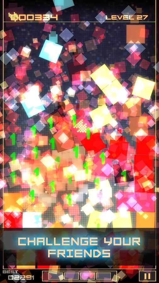 Quadrush – увлекательная казуальная игра на андроид, которая проверит скорость вашей реакции. В этой игре вам предстоит убирать одинаковые по цвету кубики с поля. Кубики в хаотичном порядке будут падать сверху вниз, и вашей задачей будет убирать их с поля, освобождая место для других. Взрывайте по четыре кубика одновременно и запускайте комбо взрывы, одним ударом уничтожая сразу большое количество кубиков, зарабатывая очки. Соревнуйтесь со своими друзьями и пройдите как можно больше футуристических уровней. Игра порадует вас динамичным и захватывающим геймплеем, а также большим количеством уровней.
