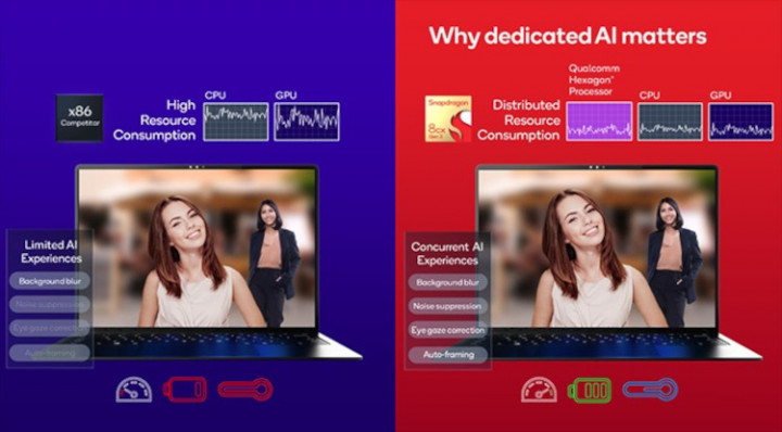 Главное преимущество процессоров Snapdragon в использовании цифрового сигнального процессора (DSP) Hexagon, на который возложены задачи связанные с ИИ, это позволяет разгрузить CPU и GPU высвобождая их ресурсы на задачи другого типа, этим они отличаются от процессоров с архитектурой x86, которые обычно используются на Windows-устройствах.