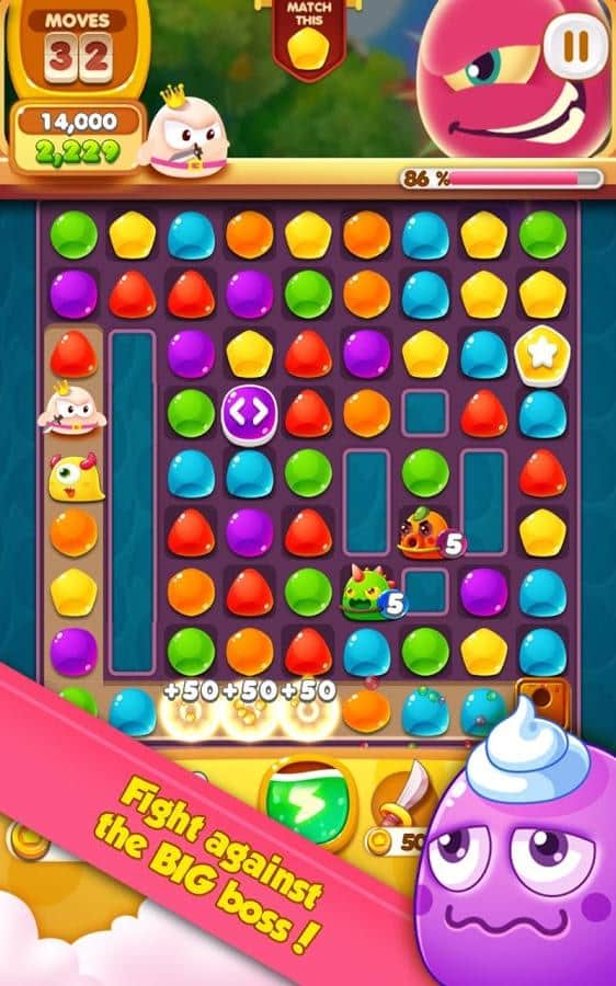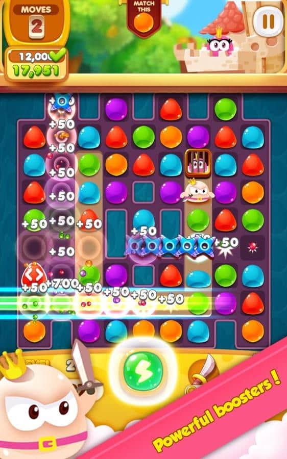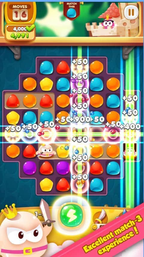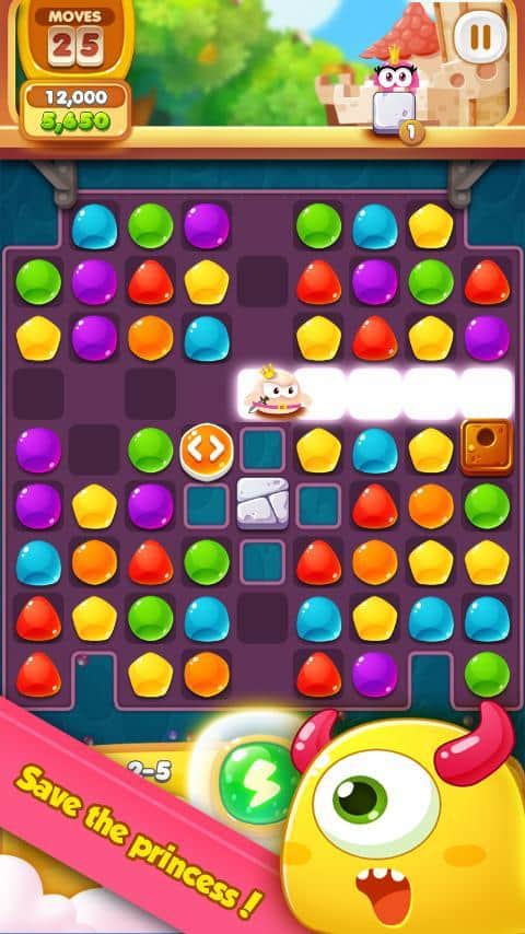 Quark Saga:Princess Rescue – увлекательная игра в которой вы попадете в волшебную страну разноцветных желейных конфет. В этой игре вы будете помогать принцу, спасать принцессу, которую похитит колдун. На вашем пути встанут большое количество монстров и мощных боссов, которые будут мешать вам подобраться к принцессе, вашей задачей будет составлять как можно длиннее ряд из желейных конфет, чтобы победить врагов. Взрывайте как можно больше конфет и помогайте принцу активировать свои силы и победить одним ударом всех врагов. Также для быстрой игры используйте бонусы, которые помогут вам пройти все 100 уровней и помочь вернуть принцессу.