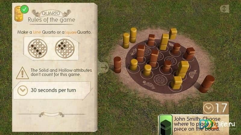 Quarto - интересная настольная игра очень популярная в США теперь и доступна на ваши андроид устройства. Эта абстрактная и захватывающая игра, в которой вам предстоит изрядно поломать голову, расставляя ловушки на каждом шагу для своего оппонента и идя на огромный риск ради победы. Игра состоит из круга на котором находятся 16 фигурок, которые необходимо двигать и составлять определенным образом для того чтобы завершить игру и победить своего соперника. Фигурки могут менять свой первоначальный вид становиться выше или меньше, а также круглыми или квадратными это будет зависеть от вас.
