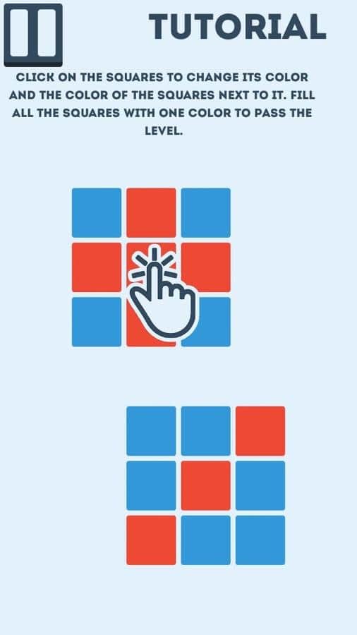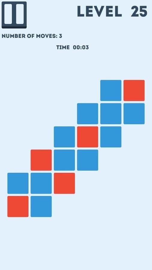 Qubika – увлекательная головоломка на андроид, где вы будете тренировать свою сообразительность и смекалку. Перед вами в этой игре окажутся кубики двух цветов синие и красные, вашей задачей будет наживать на них и менять цвет, чтобы получить единый. Меняйте цвета у кубиков и решайте непростые головоломки, при этом стараясь пройти уровень затратив как можно меньше ходов. Играйте со своими друзьями и устанавливайте свой рекорд в этой игре. Получайте различные достижения и считайте количество потраченных ходов. Пройдите более 42 уровней и используйте свой ум. Решайте головоломки и весело проводите свое свободное время.