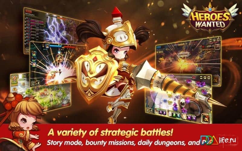 Quest RPG HEROES WANTED – соберите свой отряд отважных воинов и ведите его через опасный мир. В этой игре вам предстоит возглавить свой отряд и сделать все возможное, чтобы уничтожить могущественных боссов. Уничтожайте и ликвидируйте врагов, спускаясь в опасные подземелья и шахты. Выполняйте поставленные миссии и набирайтесь опыта, а также постоянно пополняйте свой отряд новыми героями каждый из которых, обладает своими уникальными навыками и характеристиками. Каждый герой обладает силой одного из пяти элементов, соберите их все и вы станет непобедимой командой. Вступайте в неравные бои с другими игроками и побеждайте их на полях сражений.