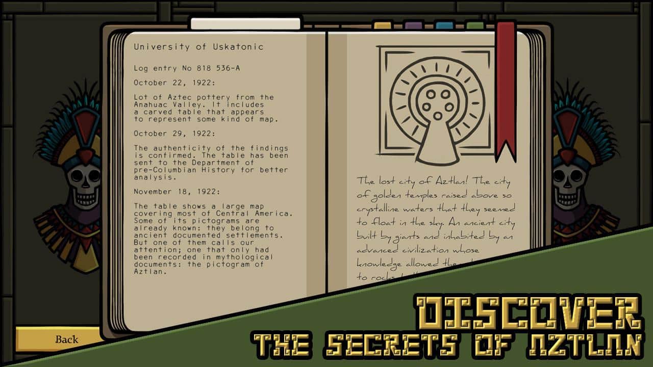Quest to Aztlan - приключенческая игра геймплей которой сочетает в себе элементы квеста и ролевки. События игры разворачиваются на территории древнего Ацтекского города Aztlan, по задумке авторов город охраняется кровожадными существами и группа исследователей попав на древние земли вынуждена сражаться с монстрами охраняющими древнюю святыню. Игровой процесс Quest to Aztlan сочетает в себе элементы текстового квеста, по мере прохождения вы будете постепенно узнавать детали сюжета в виде историй, при этом боевка выполнена в режиме реального времени. Выбрав персонажей которых вы хотите поставить в сражение, причем надо учитывать что каждый герой обладает уникальными способностями, вам предстоит выдержать бой из серии стенка на стенку. Не забыли создатели игры и о неотъемлемых атрибутах РПГ, таких как развитие и прокачка героев.
