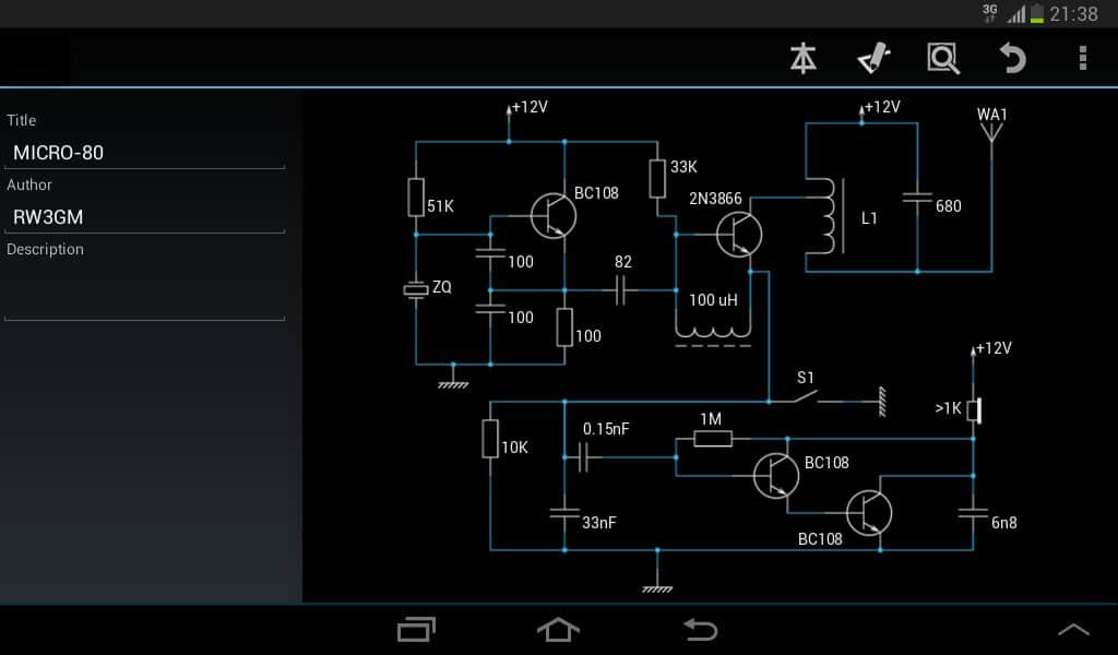 Quick Copper - Если вы студент, и не знаете где хранить шпаргалку, это приложение вас выручит, пускай и не по всем предметам, но хотя бы поможет с созданием электронных схем. Данное приложение сочетает в себе простоту и многофункциональность. Вы сможете создавать свои электронные схемы, задавать им нужные параметры, и объединить все это в блоки. В библиотеке содержатся все самые нужные для вас обозначения, а так же простой вексельный редактор, для создания таблиц. Всё это вам предоставляют бесплатно, и без какой либо рекламы, что весьма приятно. Создавайте свои собственный электронный схемы, используя все имеющиеся элементы.