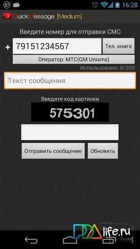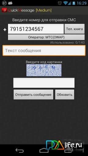Quick Message - приложение для андроид, которое позволит вам отправлять СМС сообщения абсолютно бесплатно с помощью сети интернет, через общедоступные открытые сервисы на сайтах операторов. В одном текстовом сообщении вы сможете набрать до 140 символов. На телефон получателя СМС приходит сообщение от отправителя Internet, поэтому не забываем подписываться. Удобный интерфейс поможет быстро разобраться со всеми функциями данной программы.