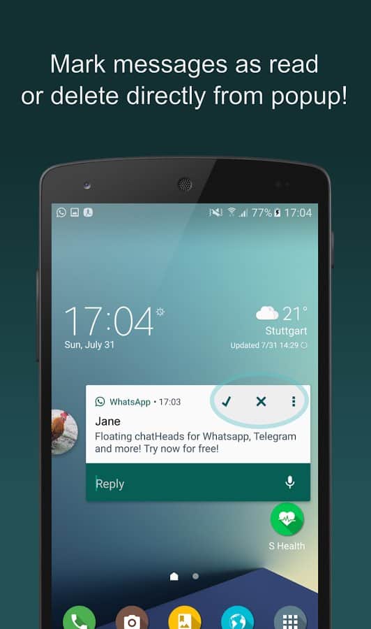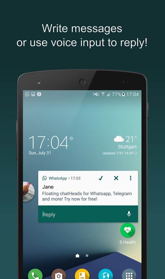 quickReply (chatHeads) - Часто сидите в чатах, и любите переписки? Или же ваша работа заставляет вас постоянно быть на связи? Тогда это приложение отлично вам подходит. Оно соединяется с другими приложениями для общения, и выводит вашу переписку на экран. Маленький значок который можно передвигать, будет висеть в углу, и всего от одного прикосновения откроется нужный вам чат, прямо там же вы сможете набрать само сообщение и отправить его.