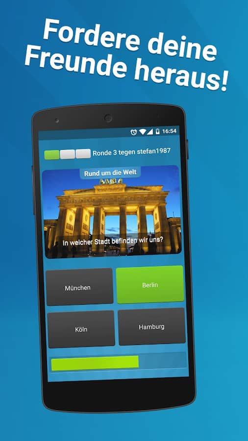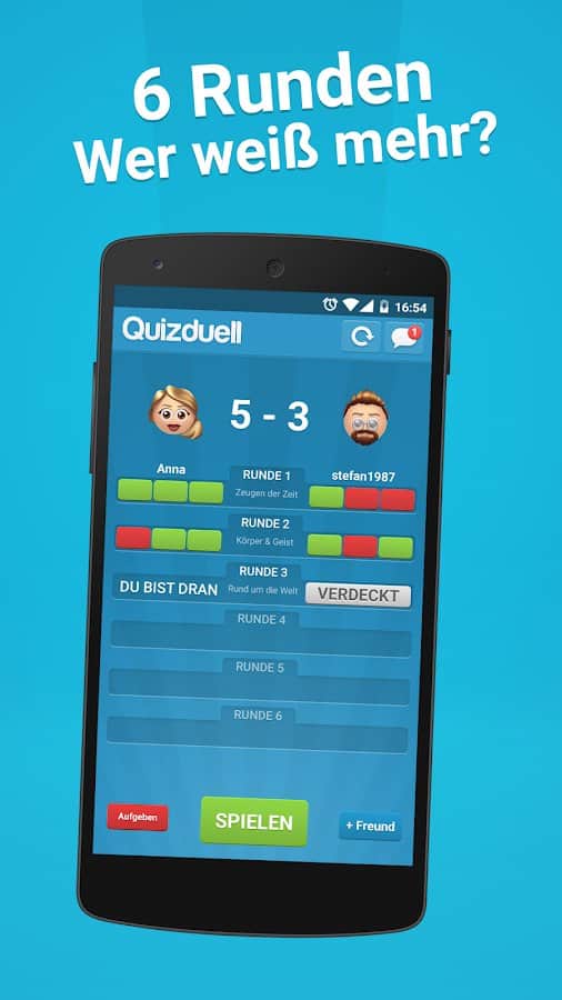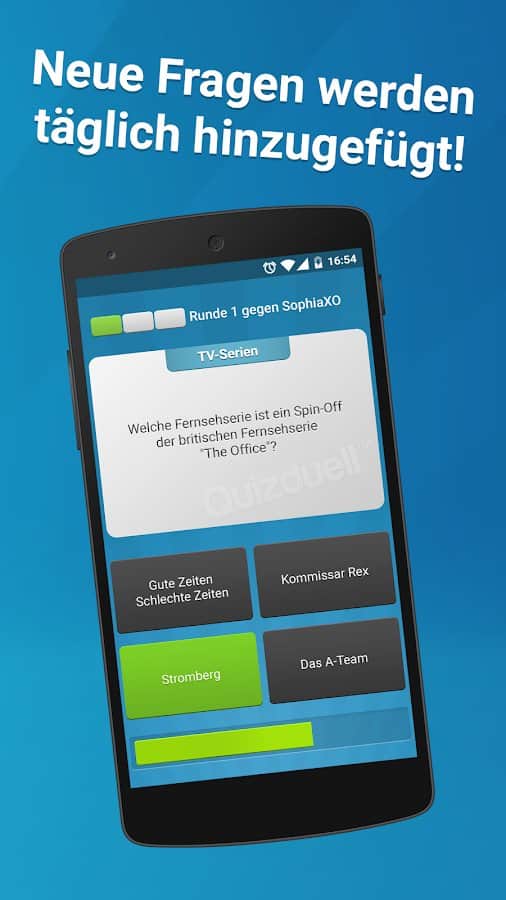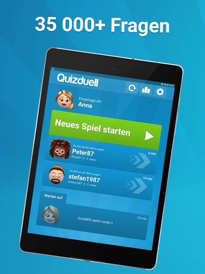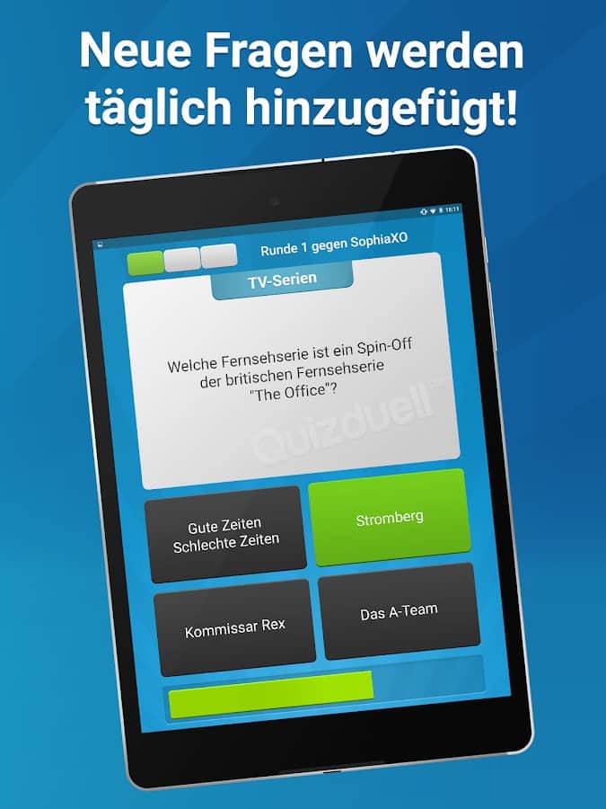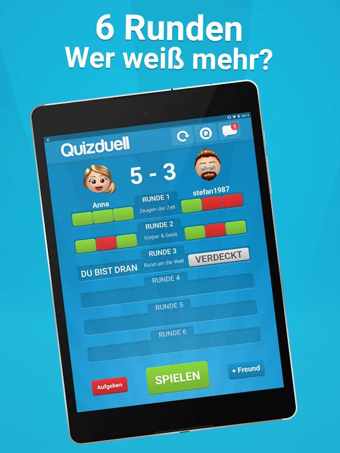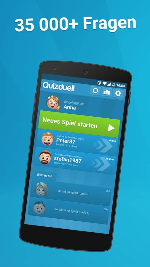 Quizduell PREMIUM – отличная викторина на андроид, где вы сможете принять участие в дуэлях с друзьями и другими игроками со всего мира. Бросайте вызов опытным игрокам в порыве узнать много новых интересных и захватывающих фактов. Игра порадует игроков новым дизайном с измененной графикой, аватарками, шрифтами и цветами интерфейса. В игре вы найдете более 35000 текстовых и графических вопросов высокого качества, выбирая из множества различных категорий. Отвечайте на поставленные вопросы быстрее своих соперников и поднимайтесь все выше в таблице лидеров. Получайте награды и бонусы и добивайтесь отличных результатов.