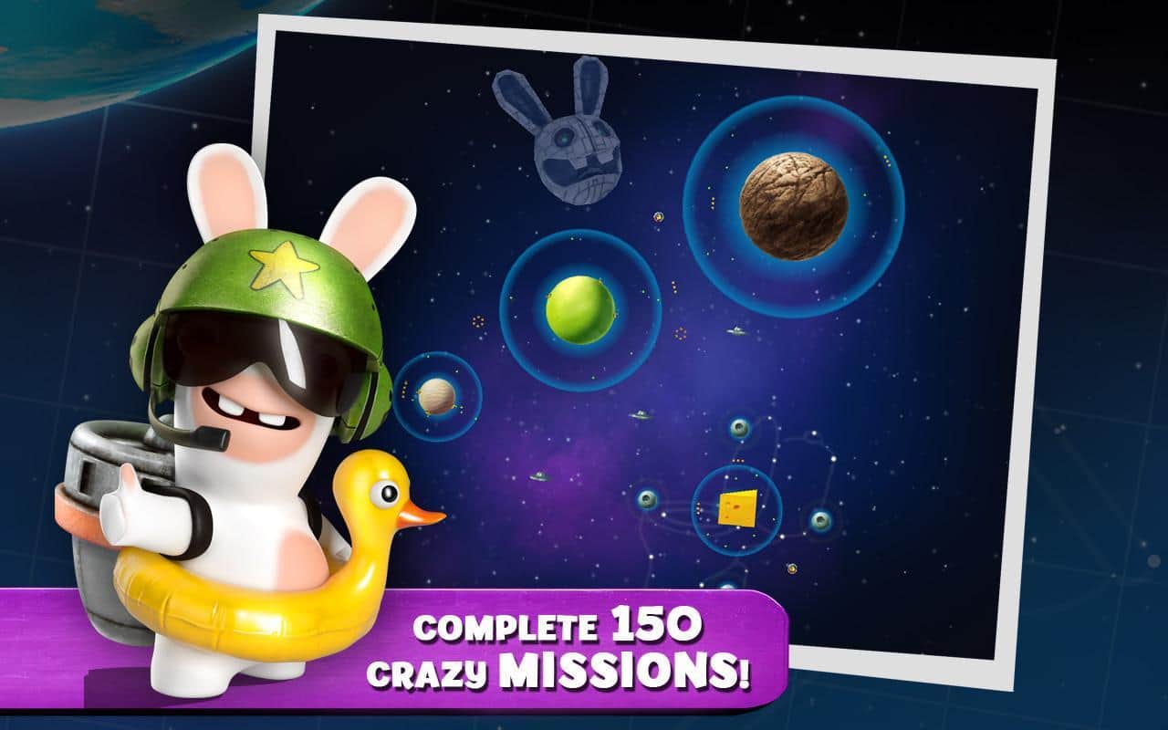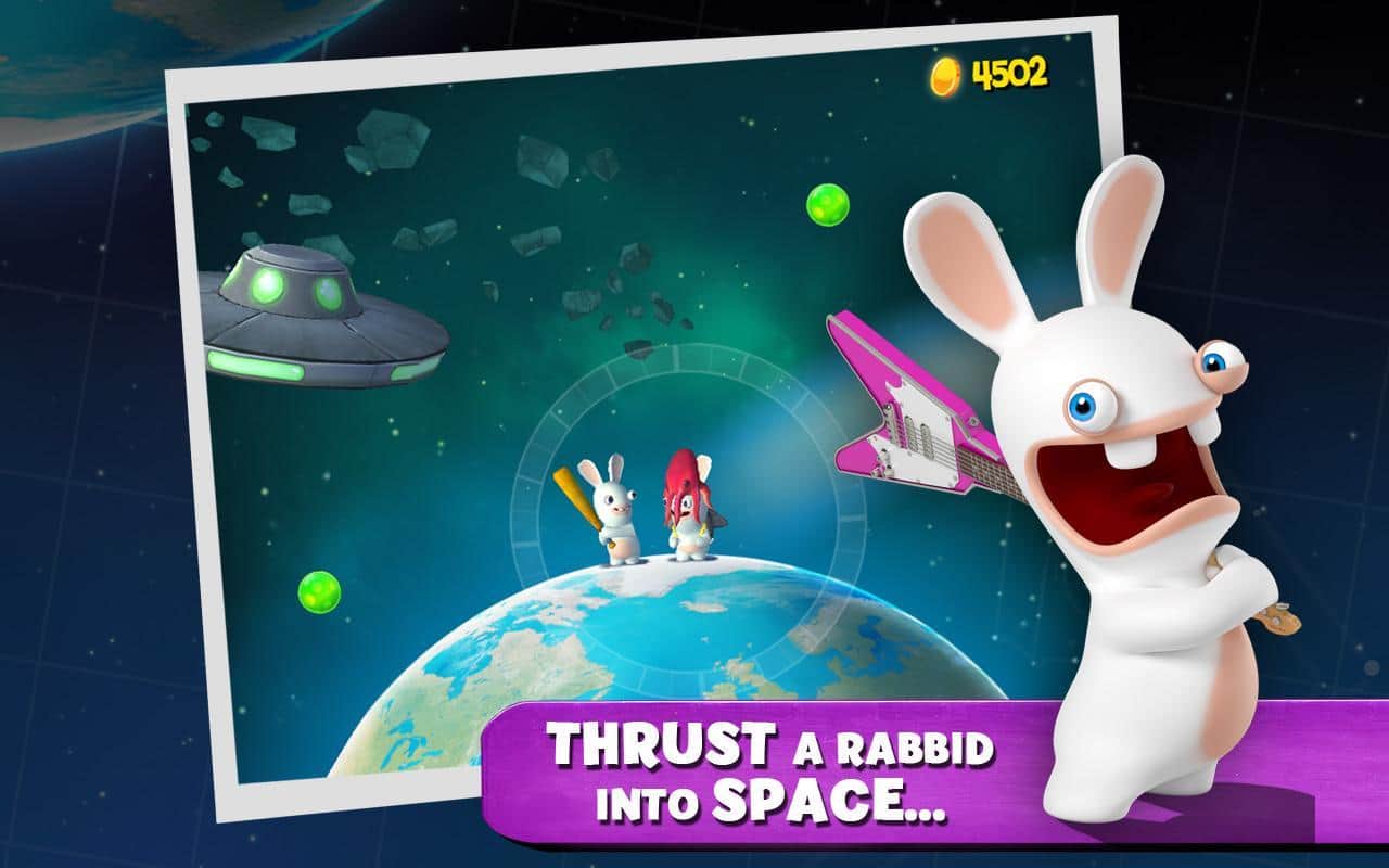 Rabbids Big Bang - игра на андроид, в которой вам с помощью биты запустите кролика в космос, для исследования галактики. Летайте при этом собирайте космо-уток и коров для того чтобы в последствии улучшить своего кролика. Снарядите кролика необычными предметами и шлемами и покоряйте просторы вселенной весело.