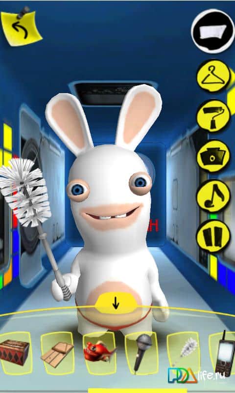 Rabbids Go Phone Again - Оцените совершенно новую игру на андроид - Rabbids ! Увлекательная игрушка, для тех кто хочет расслабится и поднять настроение! Мучайте своего зайца вдоволь - щекочите, встряхивайте и тяните за уши. В вашем арсенале целый ряд «игрушек» для издевательства: щеткой для унитаза заяц чистит зубы, мышеловкой прищемляет губы, встряхиванием телефона заяц бьется о стенки комнаты и многие другие вещи развеселят вас и ваших друзей!