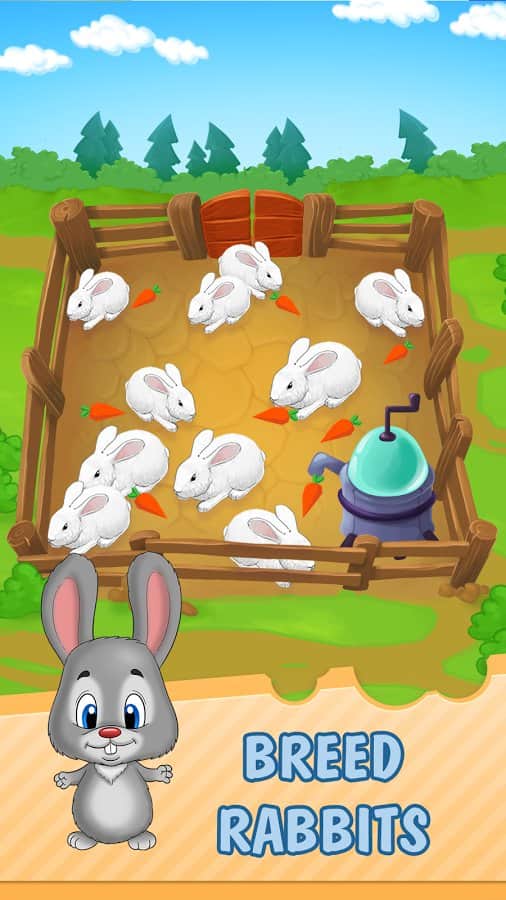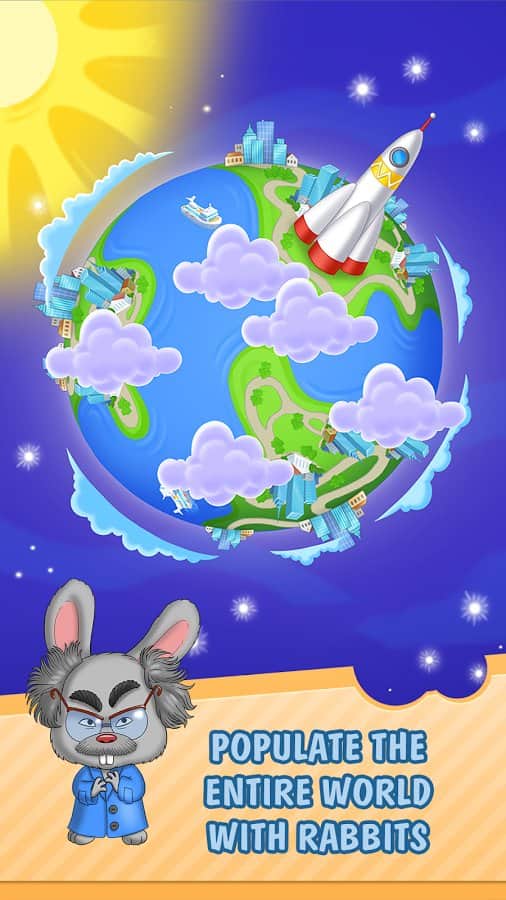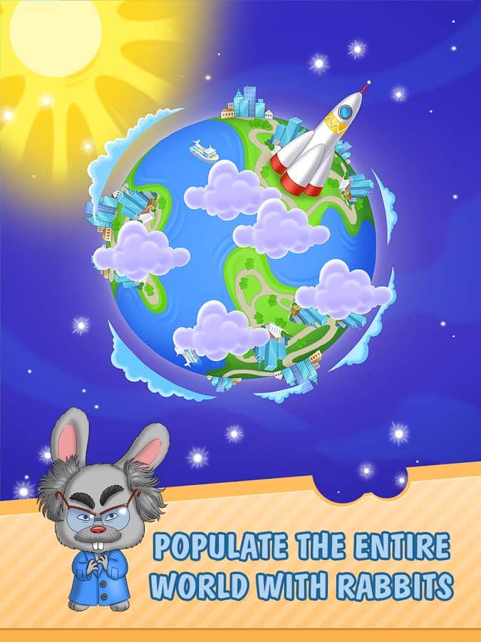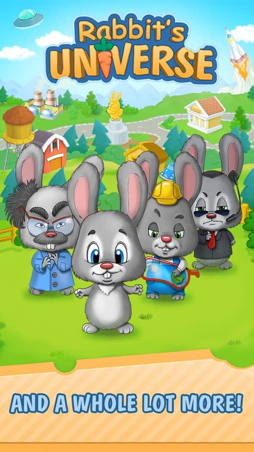 Rabbit's Universe:farm clicker – кликер на андроид, где вы будете выращивать кроликов. В этой игре вашей главной задачей будет увеличить популяцию кроликов до невероятных размеров, так чтобы они заполонили всю ферму, деревни, города и даже планету. Нажимайте на экран своего телефона или планшета как можно чаще и выращивайте кроликов, а также кормите их морковкой. Высаживайте морковку на поля и собирайте новый урожай. Создавайте новые сорта морковки и влияйте на эволюцию кроликов. Увеличивайте урожай морковки и ловите летающие тарелки инопланетян, которые хотят похитить ваших кроликов.