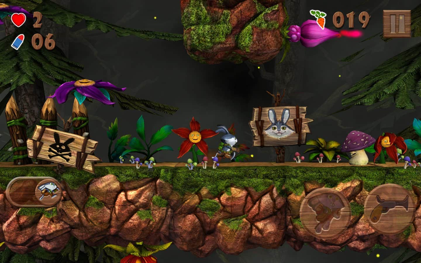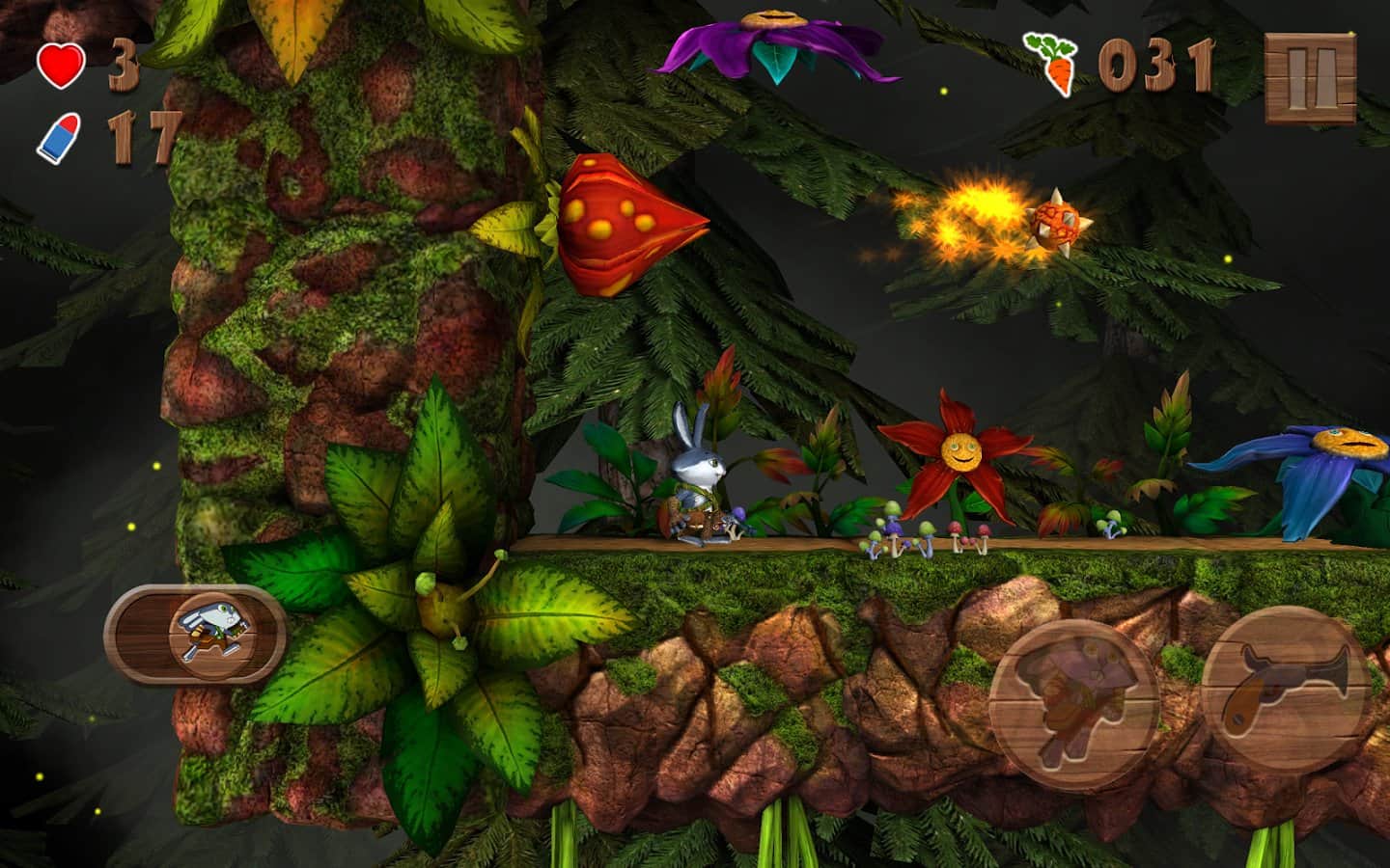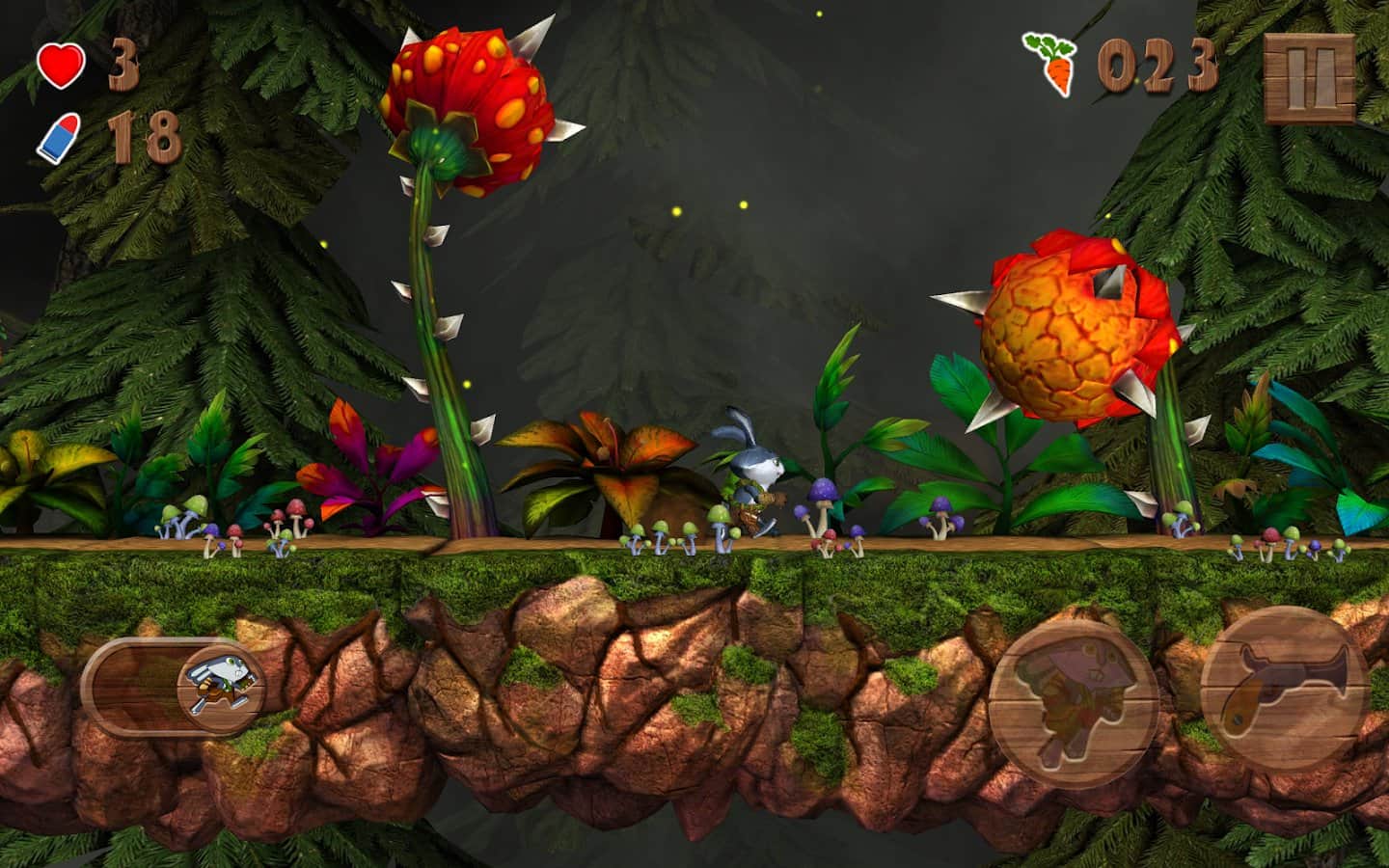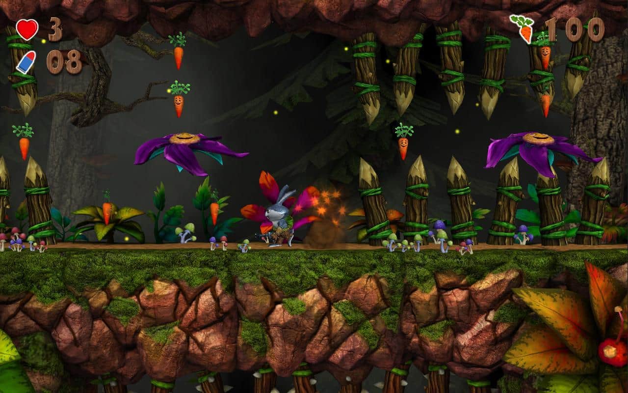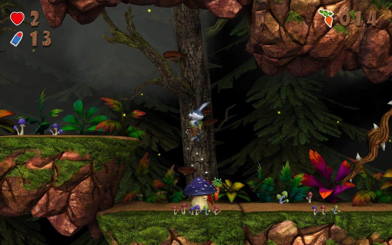 Raby- великолепный платформер в галвной роли с кроликом готовым пойти на любые приключения ради морковки. Игра проходится буквально на одном дыхании в течении нескольких часов. Жил себе самый обычный кролик в маленьком домике. Он выращивал цветы, как вдруг кто-то напал на его территории выходя из пещеры. После такого наш герой собирается в далёкое и опасное путешествие, в котором нужно спасти все свои цветы и уничтожить гриб, который их украл. Для нормальной работы приложения требуется как минимум 2 ядра по 1,5 ГГц и 1,5 Гб оперативной памяти. В игре вас ждёт более 35 разнообразных уровня.