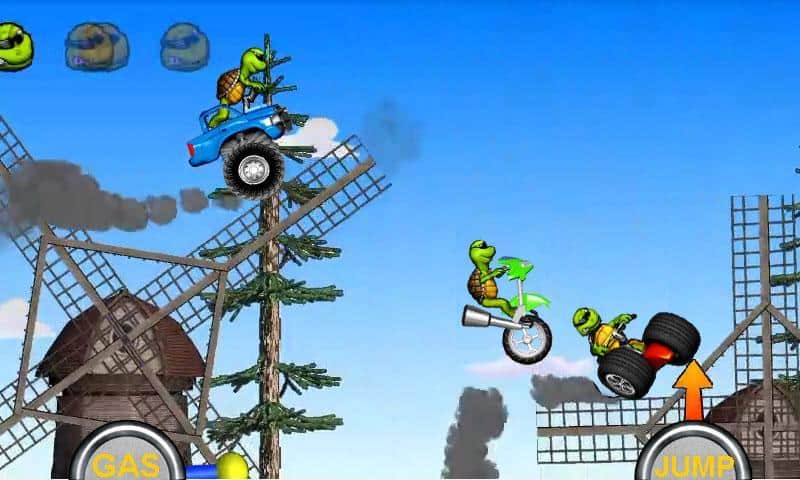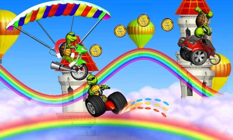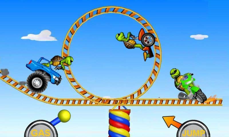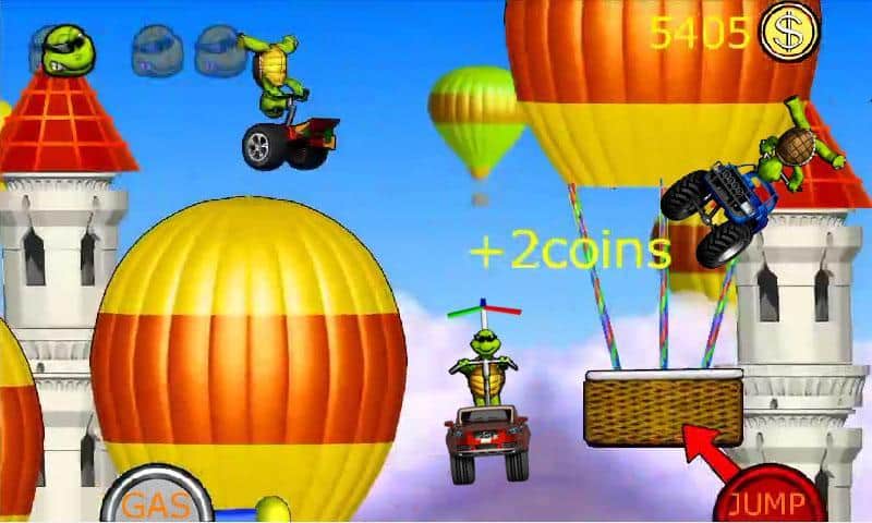 Race of gadgets 2 – экстремальные гонки, на современных гаджетах будущего в игре на андроид. В этой игре вы будете управлять черепашкой ниндзя, которой предстоит гонять по очень опасным трассам в сопровождении соперников и своих друзей. В игре для вас откроется огромное количество разнообразных уровней с головокружительными трамплинами, кольцами и подъемами. Начните играть прямо сейчас и совершайте прыжки, выполняйте захватывающие трюки и тем самым зарабатывайте деньги для покупки новых гаджетов и необычных героев. Обгоняйте своих соперников, сбивайте их с гаджетов и приходите к финишу первым, чтобы заработать еще больше денег. Повеселитесь от души, играя в эту игру.