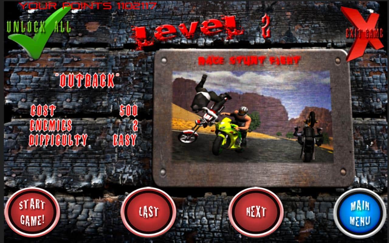 Race, Stunt, Fight, 2! - в этой гонке перед вами стоит задача ответить на вопрос "быть или быть" в том смысле, что либо вы их, либо они вас. Выбрав героя, железного коня и оружие, будьте бдительны - ваши соперники по заезду не дремлют и воспользуются любой возможностью вам насолить. Ну и вы тоже не промах, ведь так? - постарайтесь как можно быстрее обезвредить других участников, чтобы победа была легкой и при этом доставила максимум удовольствия! Выбор оружия будоражит воображение - бензопилы, дробовики, огнеметы и даже биты - все для воплощения ваших фантазий!