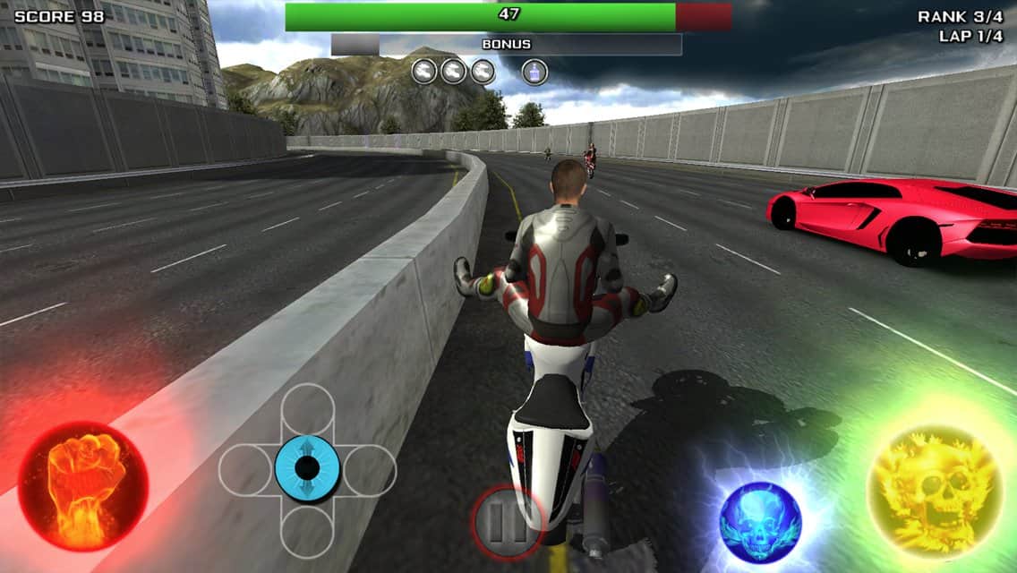 Race Stunt Fight 3! - Третья часть сумасшедших андроид гонок на мотоциклах. Вас ждет потрясающая графика и большой шквал эмоций, ведь в игре по мимо трюков есть еще и оружие, с помощью которого вы сможете вести борьбу на трассе. Так же вас порадует большой выбор мотоциклов. В игре есть возможность посоревноваться как в одиночном режиме, так и в многопользовательском режиме.