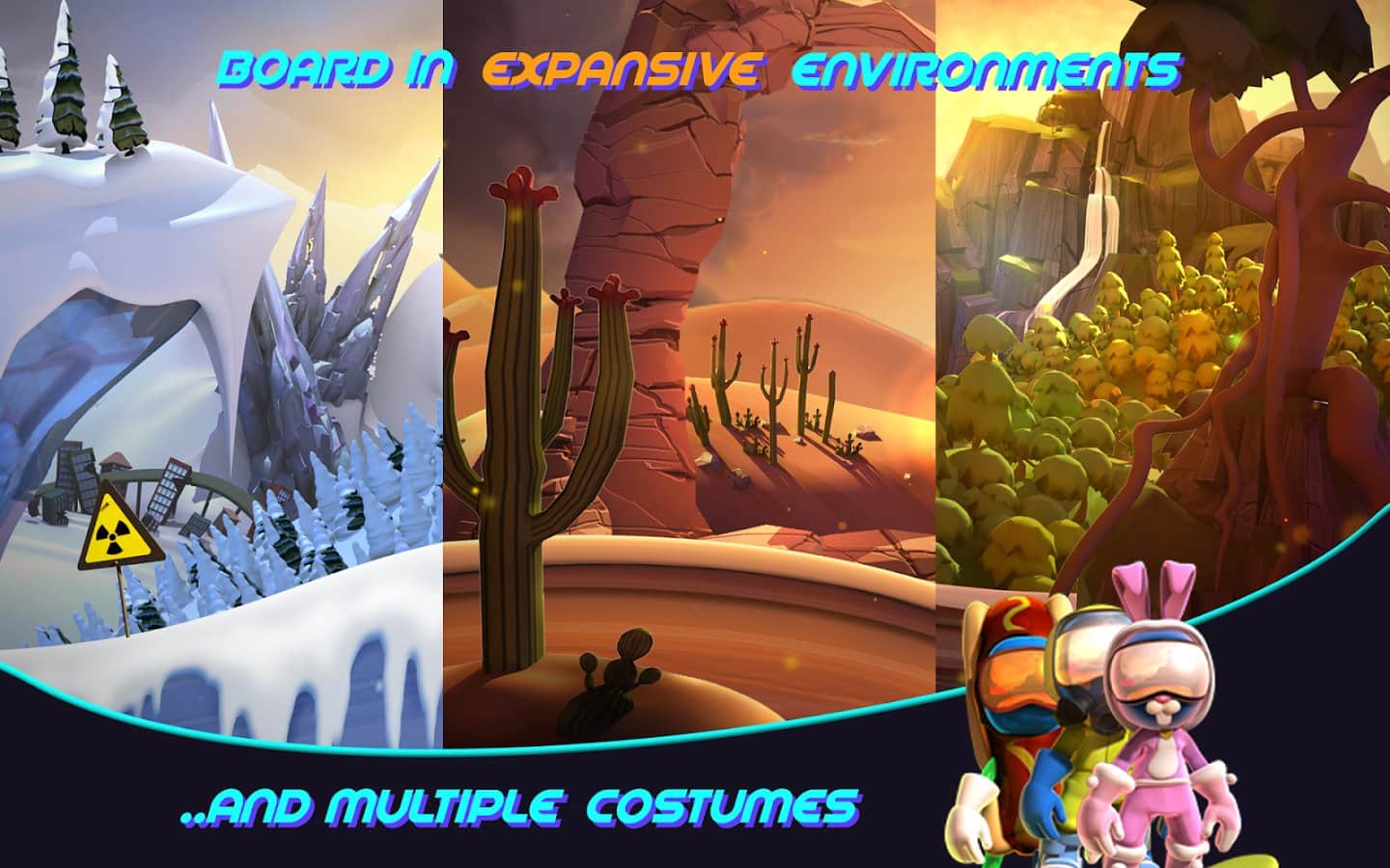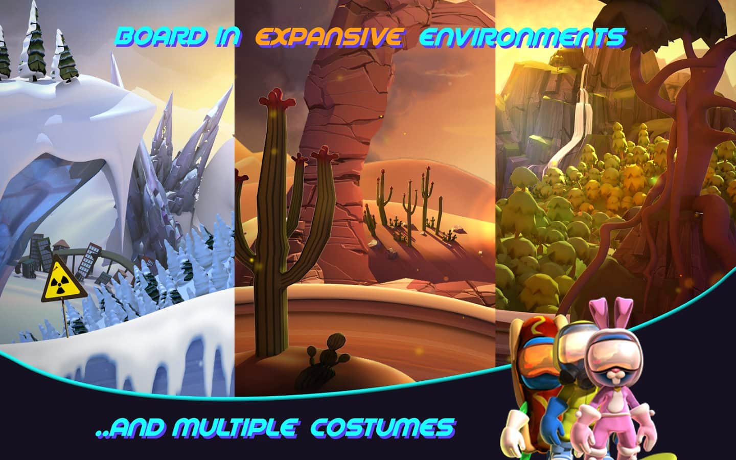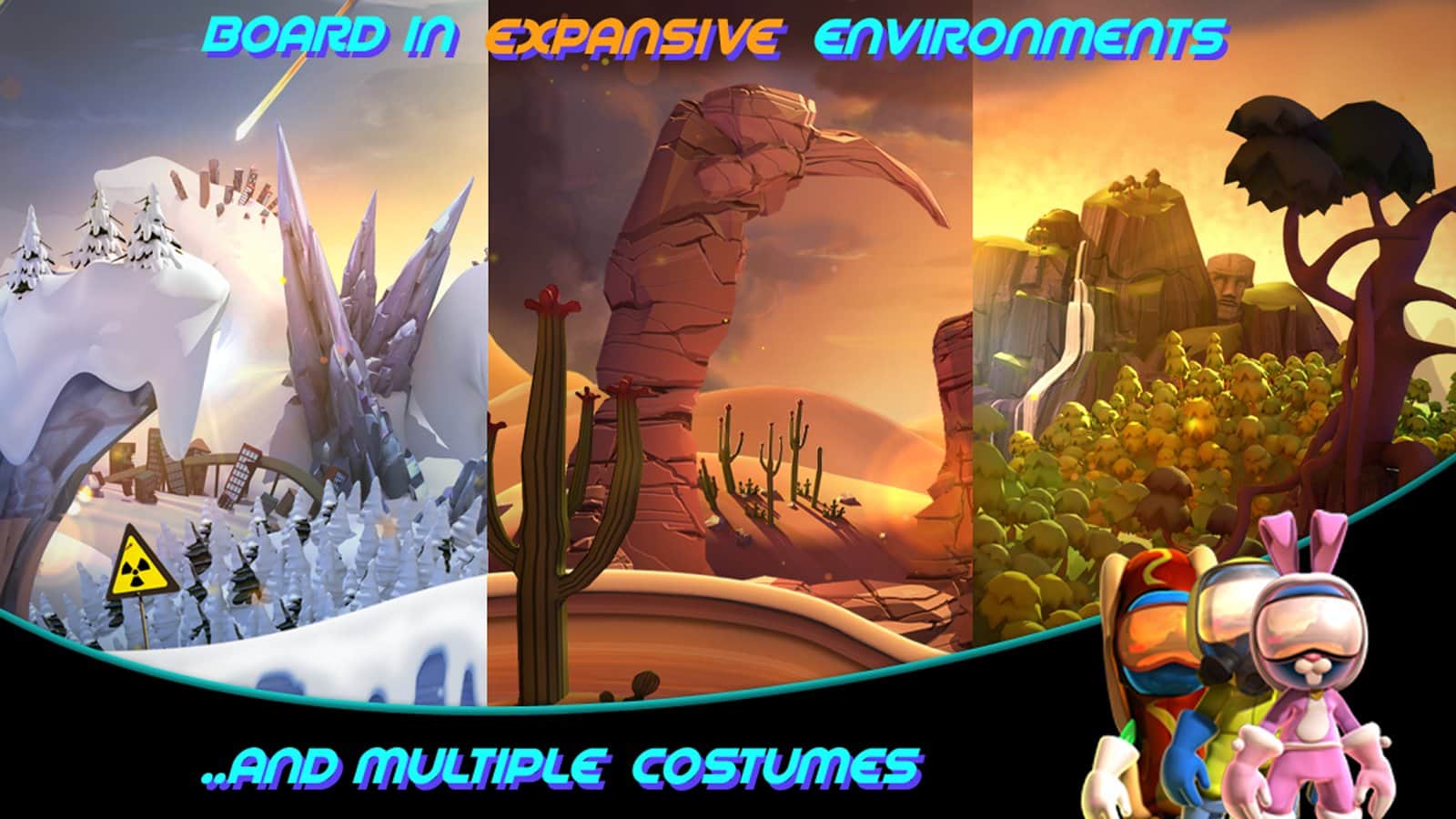 RAD Boarding - Вам предлагают такой себе апокалиптический раннер с ярко выраженными 90-ми годами. Наш герой который отлично катается на сноуборде, оказался не в том месте и не в то время. Не кто даже подумать не мог, что на горном заснеженном склоне может проснутся вулкан... Теперь вам не чего не остается делать, как убегать, что есть духу от раскалённой лавы.