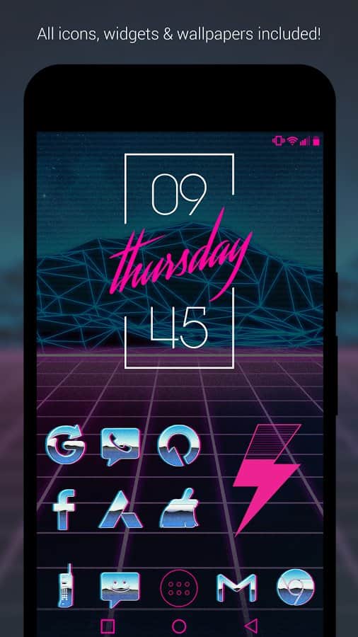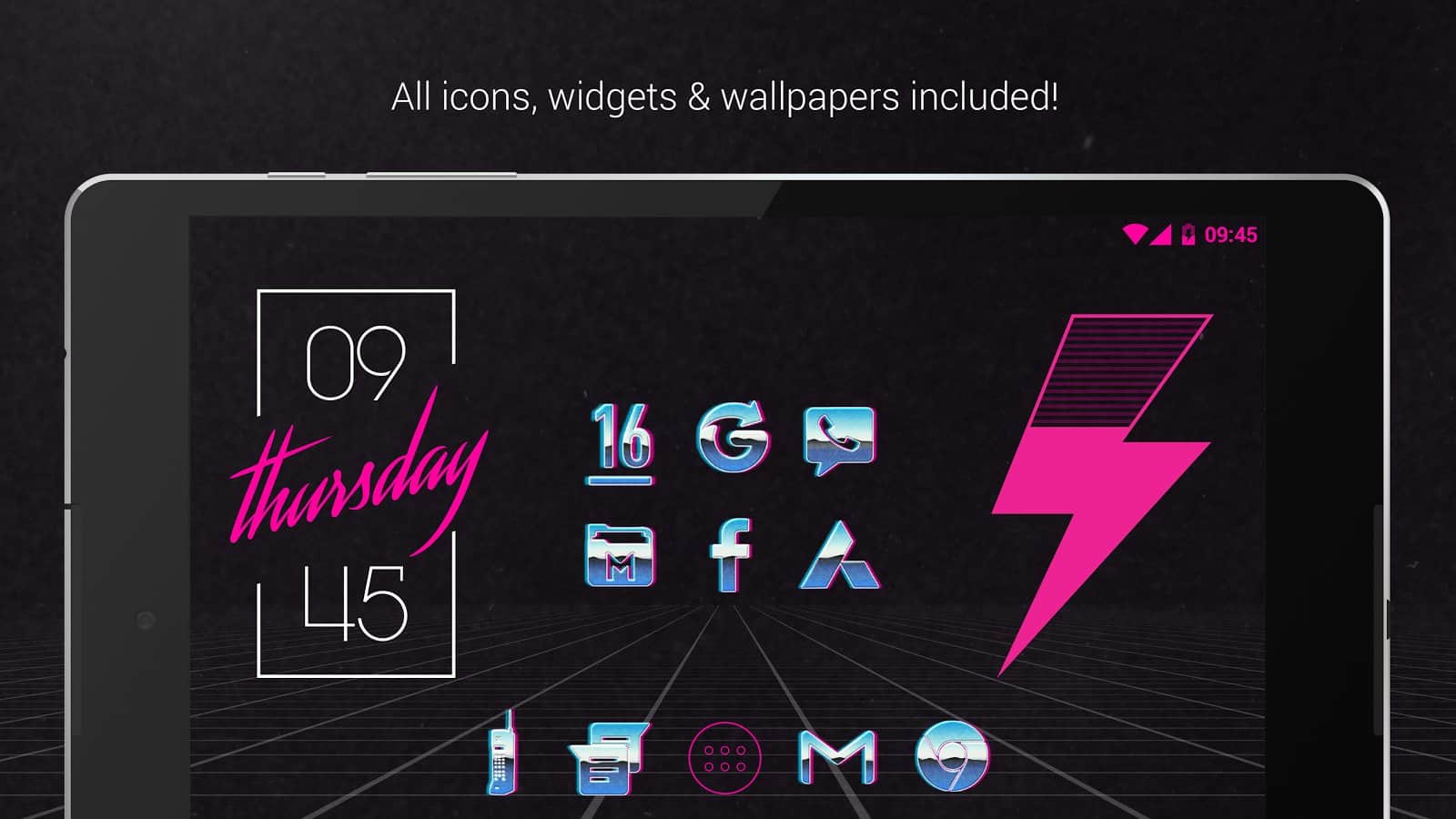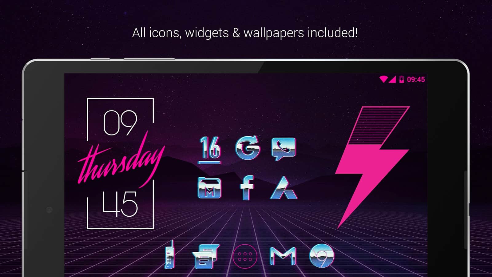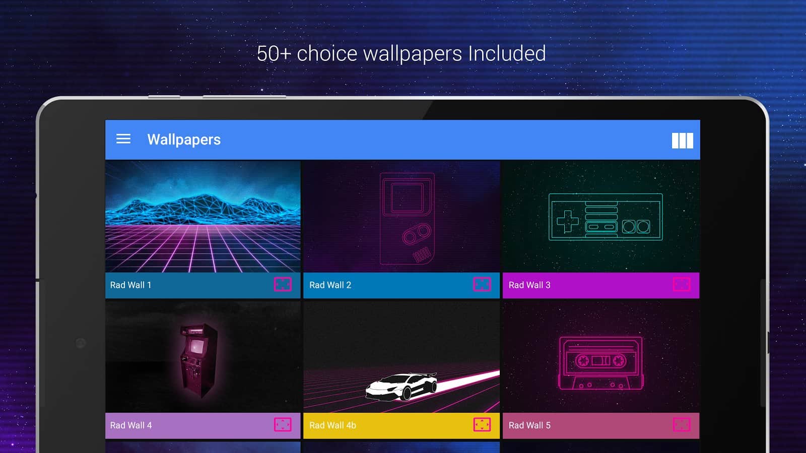 Rad Pack Pro - 80's Theme - Отличный набор обоев и иконок родом из восьмидесятых. Здесь вы найдете целую коллекцию красивых и простых обоев, а так же иконки к ним, все это можно применять целыми наборами, или же удобно отфильтровать и изменить иконки определенных приложений.