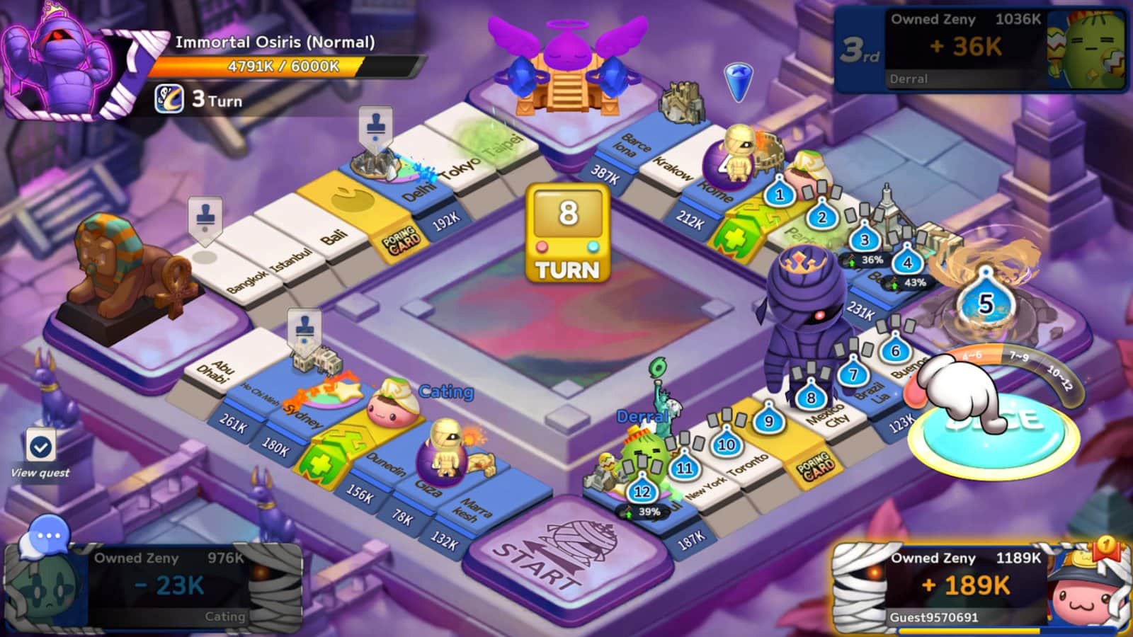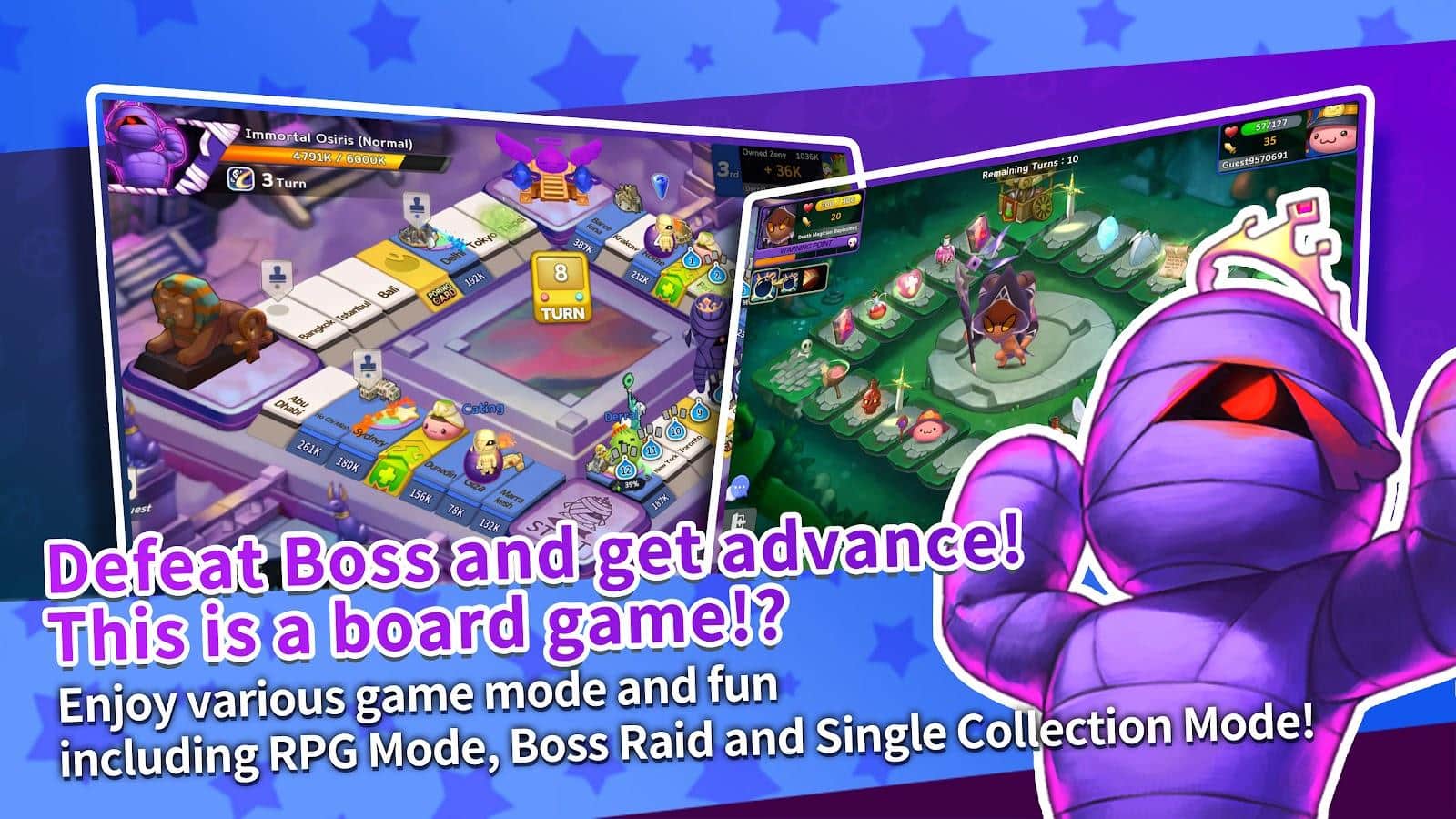 RAGMON DICE ADVENTURE! - Отправляйтесь в захватывающее путешествие вместе с легендарными существами из мифологии Рагнарёка. Вас ждет незабываемое приключение, полное тайн и сюрпризов. Исследуйте уникальные клетки поля от загадочной карты Поринга до таинственного алтаря благословений. Комбинируйте особые навыки и атрибуты строительных карт с уникальными способностями Рэгмонов. Найдите идеальное сочетание и разработайте свою победную стратегию. Развивайте своих Рэгмонов, делая их сильнее с каждым уровнем. Используйте продвинутых существ для достижения превосходства на поле боя. Готовьтесь к эпической битве с древнеегипетским богом загробного мира. Объедините усилия с другими игроками, чтобы одолеть этого могущественного противника. Но будьте осторожны одно неверное движение может обратить вас в мумию.