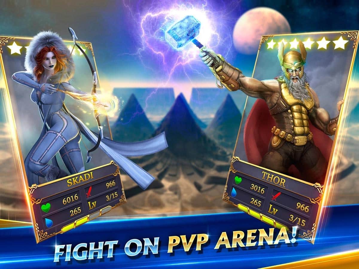 Ragnarok: Heroes of Midgard – погрузитесь в удивительный и неповторимый мир богов и мифических существ. В этой игре вашей задачей будет собрать уникальную коллекцию карт из скандинавских богов, таких как Локи, Тор, Аса и другие и не дать врагам захватить Мидгард. Бросайте все свои силы и богов на защиту Мидгарда от ужасного захватчика Локи и его непобедимой армии монстров. Вступайте в эпические схватки с врагами и сделайте их своими союзниками, а также постоянно пополняйте свою армию новыми героями и богами каждый из которых обладает своими уникальными навыками и способностями. Сражайтесь в PVP боях на арене со случайными игроками со всего мира и побеждайте их.