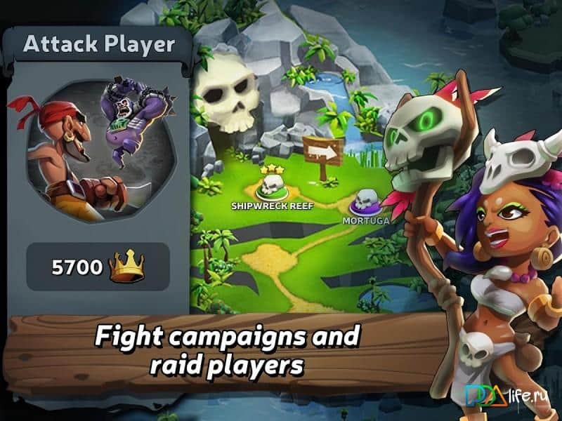 Raids of Glory – стратегия на андроид, где вам предстоит собрать свою непобедимую команду пиратов и открывать для себя новые острова. Путешествуйте по удивительному миру этой игры и получайте доступ к легендарным сокровищам, которые таятся на просторах Карибского моря. Открывайте для себя новые земли и вступайте в бой с местными жителями, которые не захотят вам отдавать сокровища. Постройте свою пиратскую крепость и не дайте врагам захватить ее, а между тем сами нападайте на базы противников, атакуя их и забирая все самое ценное. Объединяйте свои силы с другими игроками и друзьями и создайте свою пиратскую империю.
