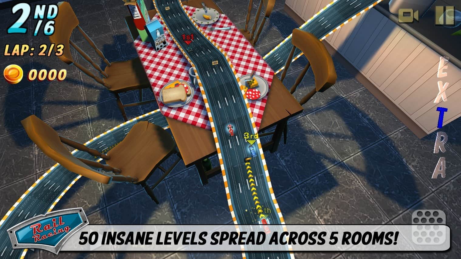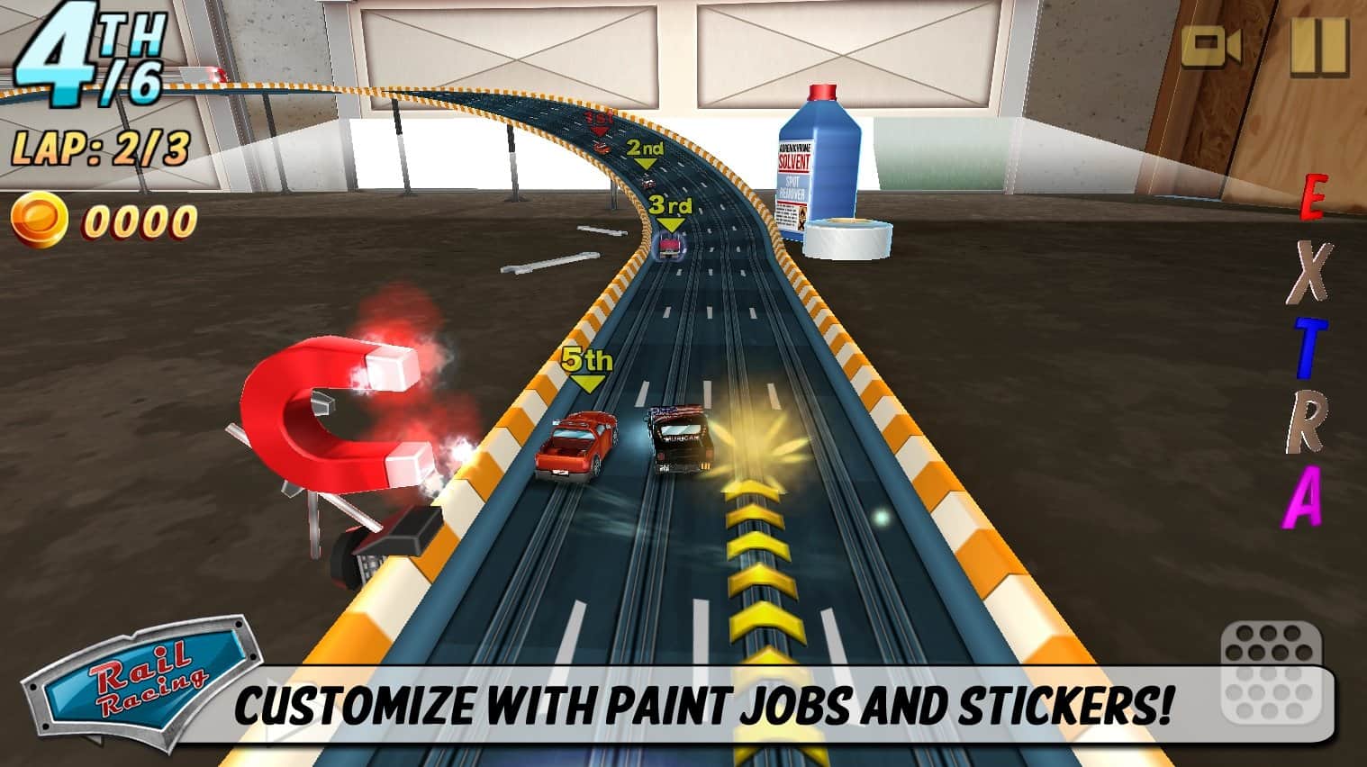 Rail Racing - Веселые андроид гонки на мини автомобилях по крутым спроектированным трассам. Эти гонки пройдут на пятидесяти различных крутых треков. Разблокируйте шестнадцать уникальных автомобилей четырех различных видов, такие как ретро авто, тяжеловесы, супер кары и гоночные. На трассах расположены различные препятствия и бонусы, которые вам помогут в гонке, а может и наоборот навредит.