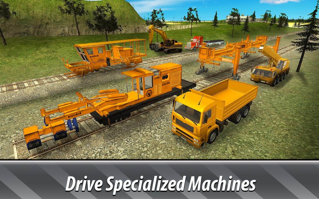 Railroad Building Simulator - build railroads! – симулятор на андроид, где вы будете выступать в роли руководителя, который следит за строительством железной дороги. В этой игре вашей задачей будет строить железную дорогу с нуля, и выполнять все необходимые миссии. Следите за всеми этапами работ и начинайте с расчистки стройплощадки для дальнейшего строительства. Управляйте современной техникой, начиная от самосвалов, кранов и бульдозеров и заканчивая сварочным вагоном и рельсоукладчиком. Перемещайтесь по двум участкам строительства дороги и выполняйте все задания в указанный срок. Игра порадует вас огромным парком техники, двумя участками строительства, многочисленными заданиями и хорошей графикой.