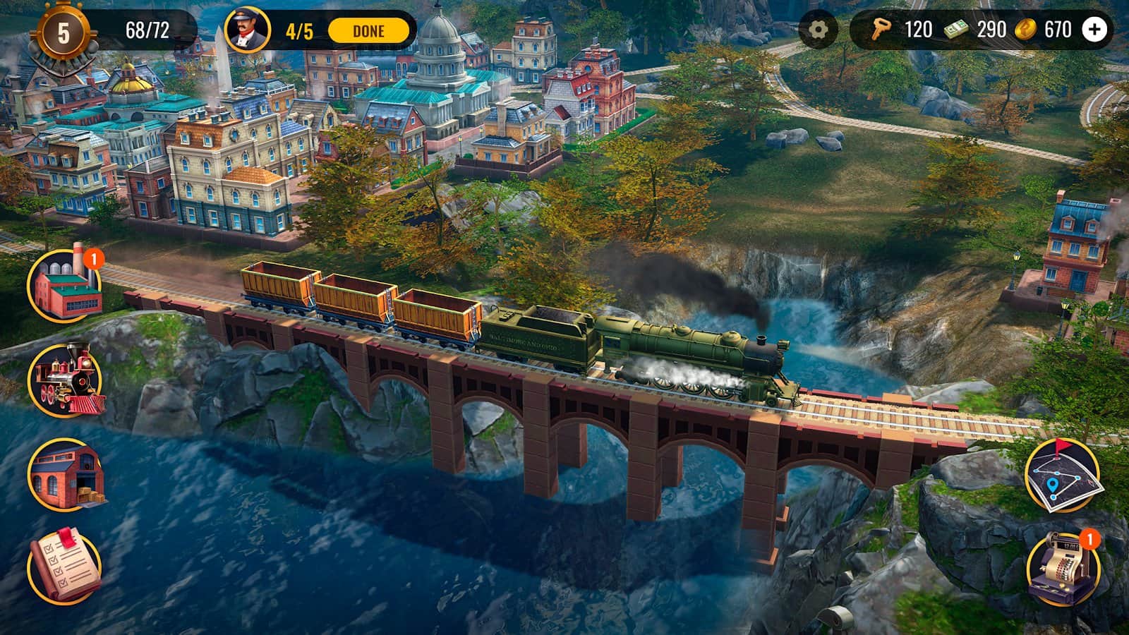 Railroad Empire - игра где каждый игрок становится железнодорожным магнатом в эпоху Золотого века. Здесь вы не просто управляете поездами - вы создаете целые железнодорожные империи, связывая города и фабрики, развивая свою логистику и расширяя парк поездов. Вам предстоит не только отправлять поезда по маршрутам, но и улучшать их, открывая новые типы локомотивов и модернизируя существующие. Начиная с небольших паровых двигателей, вы постепенно перейдете к высокоскоростным электропоездам, каждое улучшение которых повышает эффективность вашего транспорта. Строительство железных дорог - это не только прокладка путей, но и использование туннелей, мостов и станций, чтобы преодолеть любые препятствия. Каждое новое железнодорожное сообщение увеличивает ваш доход, позволяя вам инвестировать в расширение вашей сети.