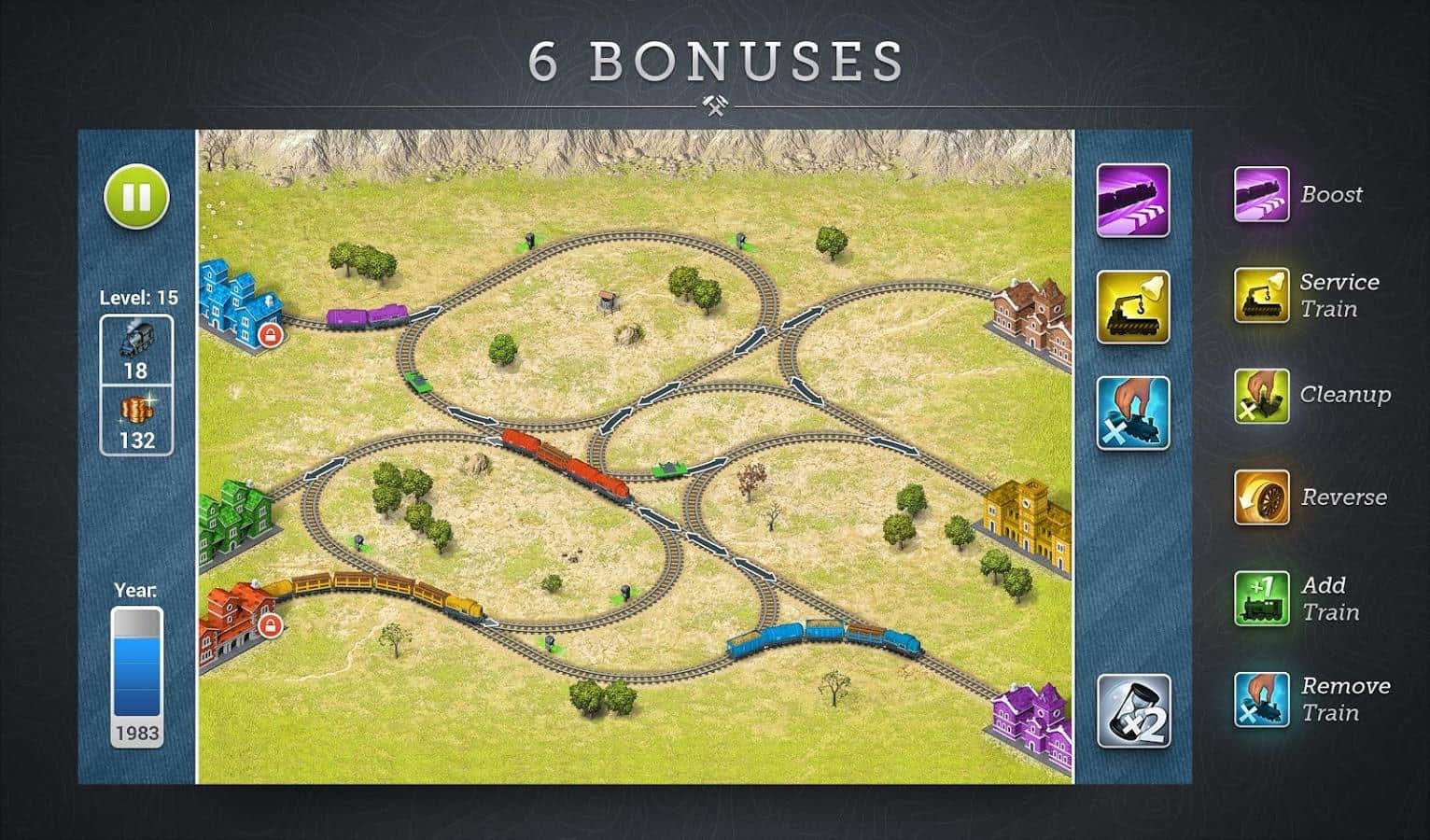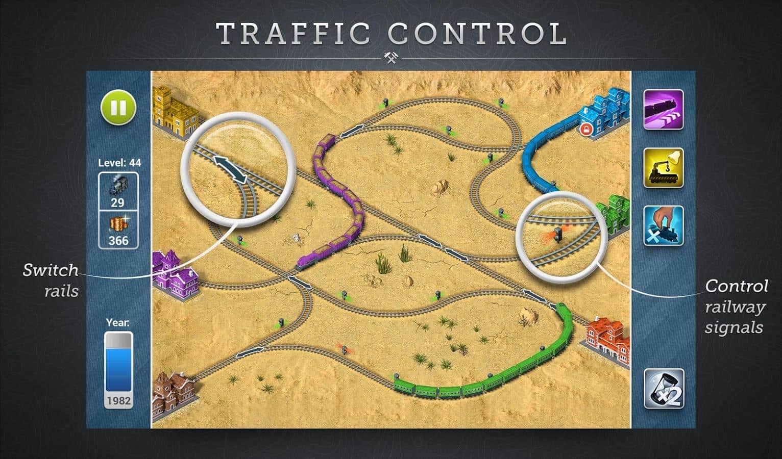 Rails - римейк одной из лучших игр 90-х годов этого жанра теперь и на андроид. Строим железные дороги, направляем поезда по разным путям, переключаем стрелки и семафоры и избегаем столкновений поездов. В игре представлены различные ситуации, например один поезд может быть без тормозов, другой с бомбой в салоне, третий очень длинный. Такие разнообразные сюрпризы только добавят азарта к игре и разнообразят и без того интересный геймплей.