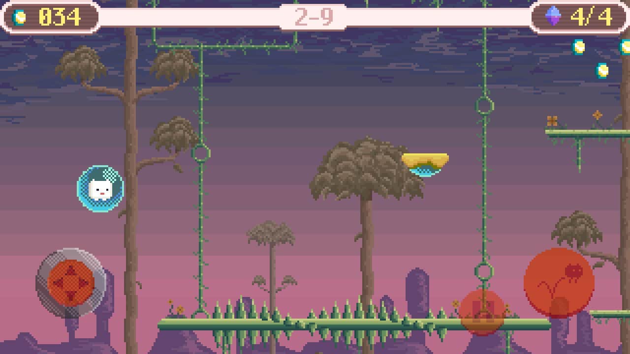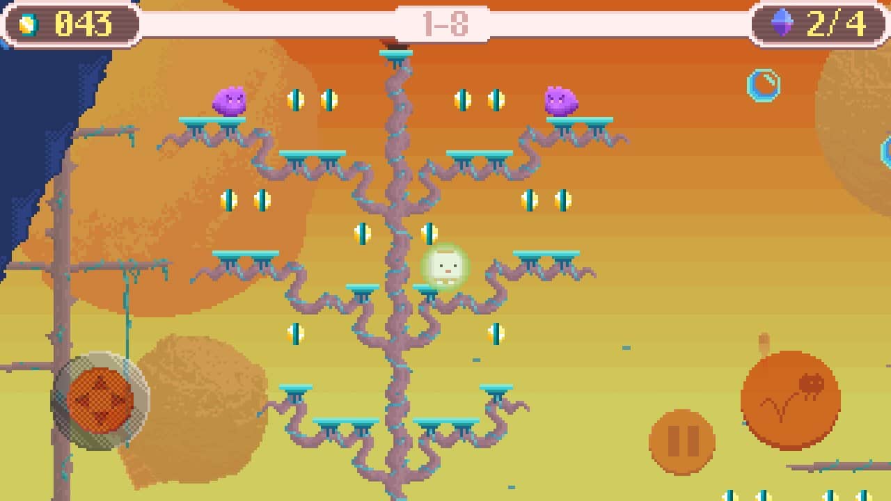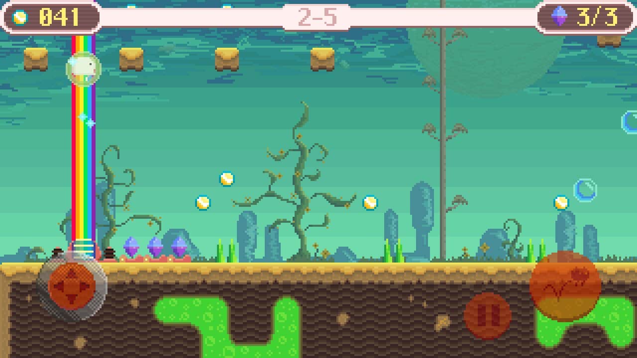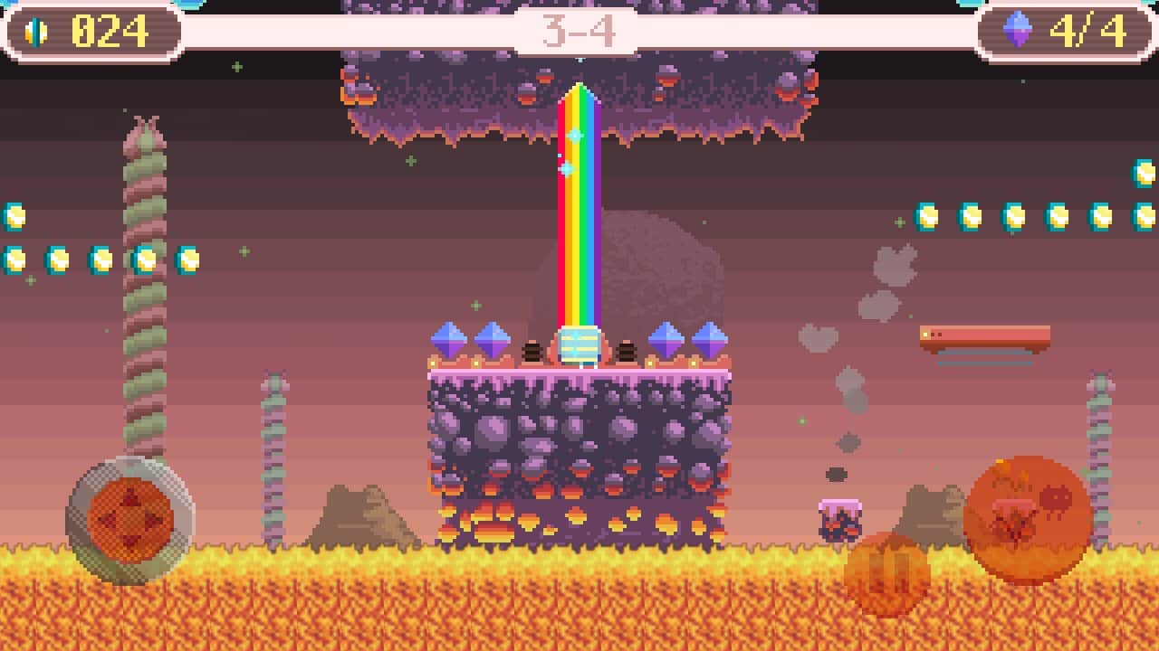 И так, Rainbow Diamonds это классический платформер в пиксельном стиле, каждый из уровней представляют из себя целую череду платформ, площадок, ям, обрывов, так что прохождение каждого из которых потребует от вас завидной ловкости и мастерства. при этом уровни подарят вам не только трудности, но и массу приятных сюрпризов в виде бонусов и драгоценных камней используя которые вы сможете развить своего персонажа.