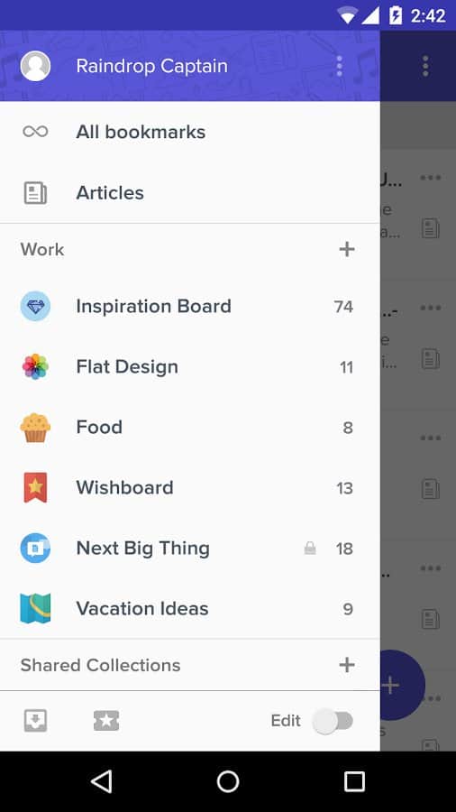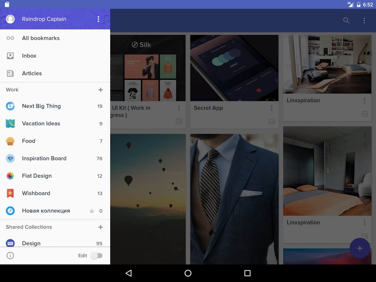 Raindrop.io – отличная программа, благодаря которой вы сможете сохранять видео, статьи, закладки из браузера и приложений, в том числе связанный с ними контент в зависимости от типа страницы. Создавайте свои коллекции и распределяете по ним всю необходимую сохраненную информацию, а так же делитесь коллекциями с друзьями.