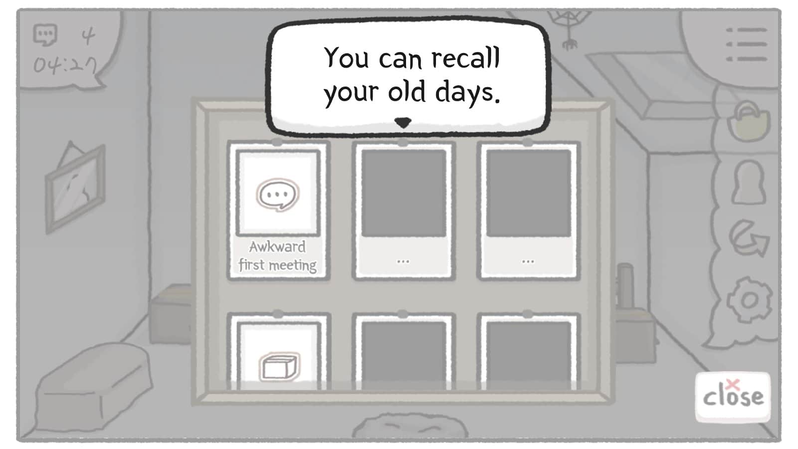 Rainy attic room - Откройте собственное сердце в один из самый обычный день, когда в городе как всегда идет дождь. Людям сейчас очень сложно действительно сблизиться, поэтому крайне важно поддерживать связь друг с другом и двигаться навстречу новому. Попадите на чердак своего депрессивного друга и начните все там украшать, приобретая новую мебель и декорации. Уберите комнату от пыли с паутиной, полностью послушайте историю двух людей и поближе с ними познакомьтесь. Медленно насладитесь прекрасной обстановкой и с наслаждением проведите свободное время.